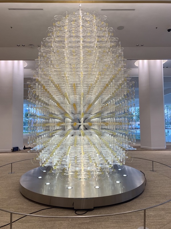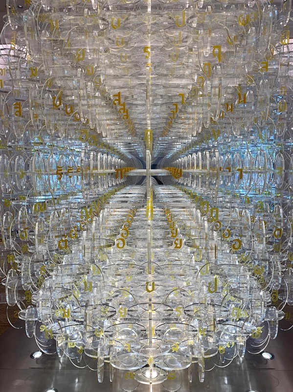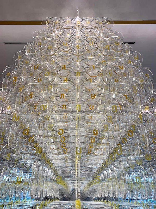 รูปแบบเมล็ดพันธุ์ที่เลือกมาจากการค้นคว้ารูปทรงของเมล็ดพันธุ์จํานวนมากในธรรมชาติ มาลงตัวที่รูปทรงที่มีความครอบคลุมรูปแบบของเมล็ดพันธุ์ในธรรมชาติได้อย่างลงตัว เมื่อแผ่น Acrylicใส 3,000 กว่าชิ้น ก่อตัวขึ้นเป็นรูปทรงเมล็ดพันธุ์ขนาด Oversized สูง 4.20 เมตร แต่ละชิ้น ได้แนวความคิดจากฟอสซิลภายใต้ผลึกอัมพัน (Amber) ที่ผ่านกาลเวลา ภายใต้ชั้นหินนับล้าน ๆ ปี นํามาเป็นต้นทางความคิดในการใช้อักษรไทยสีทองที่บรรจุไว้ในแผ่น Acrylic ใส เปรียบได้กับเมล็ดพันธุ์ที่เก็บข้อมูลทางพันธุกรรม ซึ่งก็คือมรดกทางวัฒนธรรมที่ส่งผ่านจากอดีตสู่อนาคต ผลลัพธ์จาก Pattern ของการจัดเรียงแผ่น Acrylic ใส จํานวนมหาศาล จึงสะท้อนประกายแวววาวเฉกเช่น Crystal ขณะเดียวกันก็ซ่อนสาระสำคัญท่ามกลางอักษรไทยมากมาย ที่ถูกออกแบบให้มีบุคลิก ความเป็นไทยเด่นชัด และค้นพบคำ “สืบสาน- รักษา-ต่อยอด” ซ่อนอยู่ ชวนให้ค้นหา ไม่ว่าครั้งใดที่ได้มาสัมผัสด้วยตา