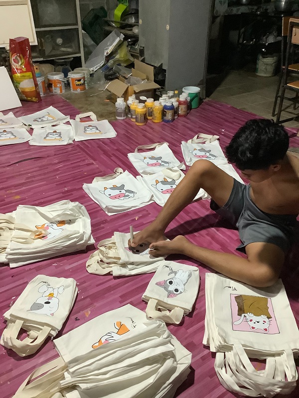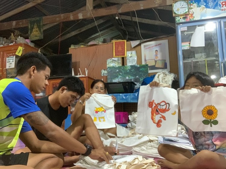จากที่มีสื่อช่วยนำข่าวไปลงหรือแชร์ตามสื่ออินเตอร์ทำให้ยอดสั่งกระเป๋าเพิ่มขึ้นเรื่อย ๆ ครับ ยอดมาเรื่อย ๆ เลยครับ แบบว่าไม่ตกทยอยมาเรื่อย ๆ ครับ ลูกค้าส่วนใหญ่ซื้อไปแจกตามเทศกาลก็มี หรือซื้อไปแจกลูกค้าก็มีมีหลายแบบครับ ลายที่ผมวาดก็มีหลายแบบหรือลูกค้าออร์เดอร์ลายก็มีครับ