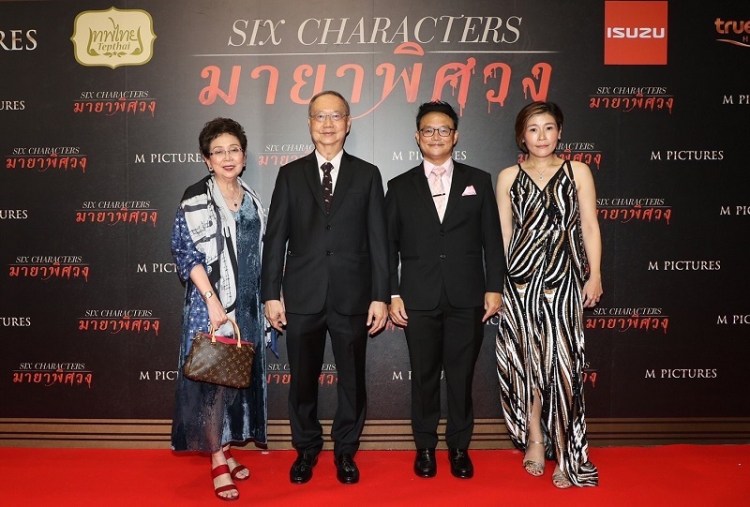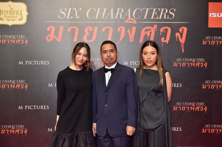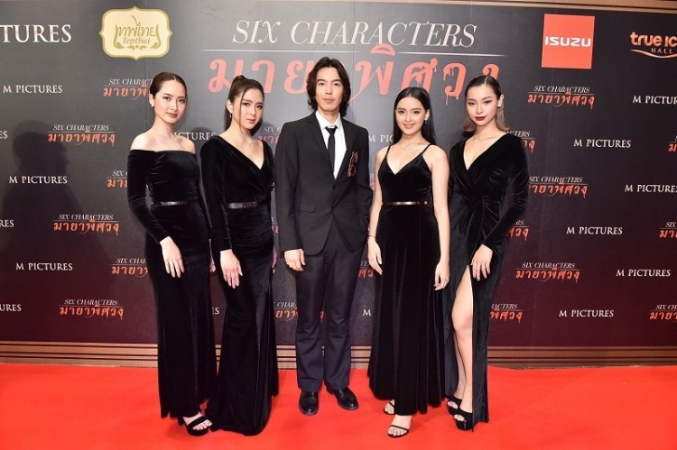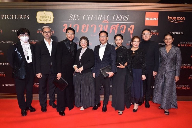 M PICTURES นำโดย “สุรเชษฐ์ อัศวเรืองอนันต์” ประธานเจ้าหน้าที่บริหาร บริษัท เอ็มพิคเจอร์ส เอ็นเตอร์เทนเม้นท์ จำกัด (มหาชน) ร่วมกับ พันธ์ศักดิ์ วรเวทวุฒิคุณ ผู้อำนวยการฝ่ายการตลาด ผลิตภัณฑ์ยาสีฟันเทพไทย โดย บริษัท แมสมาร์เกตติ้ง จํากัด และ วิชัย สินอนันพัฒน์กรรมการ บริษัท ตรีเพชรอีซูซุเซลส์ จำกัด จัดงาน WORLD PREMIERE สุดยิ่งใหญ่เตรียมส่งภาพยนตร์ “Six Characters มายาพิศวง” ผลงานภาพยนตร์มาสเตอร์พีซเรื่องสุดท้ายของ “ม.ล.พันธุ์เทวนพ เทวกุล” ที่เข้าฉายในโรงภาพยนตร์วันที่ 15 กันยายน ภาพยนตร์ที่ “ตัวละคร” ลุกขึ้นมามีชีวิตพร้อม “ความจริง” สุดระทึกกำลังจะถูกเปิดเผย! จากบทละครสุดคลาสสิกที่ปฏิวัติวงการ “Six Characters in Search of an Author” ฝีมือการประพันธ์โดยนักเขียนเจ้าของรางวัลโนเบล “ลุยจิ ปิรันเดลโล” สู่ที่สุดแห่งภาพยนตร์ที่เตรียมตัวสร้างปรากฏการณ์ครั้งล่าสุด ถ่ายทอดบทบาทโดยนักแสดงคุณภาพ มาริโอ้ เมาเร่อ, เขมนิจ จามิกรณ์, ทักษอร ภักดิ์สุขเจริญ, ณฐพร เตมีรักษ์, ปกรณ์ ฉัตรบริรักษ์, จิรวิชญ์ พงษ์ไพจิตร, ชัยพล จูเลี่ยน พูพาร์ต, ศักราช ฤกษ์ธำรงค์, รัดเกล้า อามระดิษ, ราศี ดิศกุล ณ อยุธยา, ฟลอร่า มัสซาโร และ ภคพล ตัณฑ์พาณิชย์
