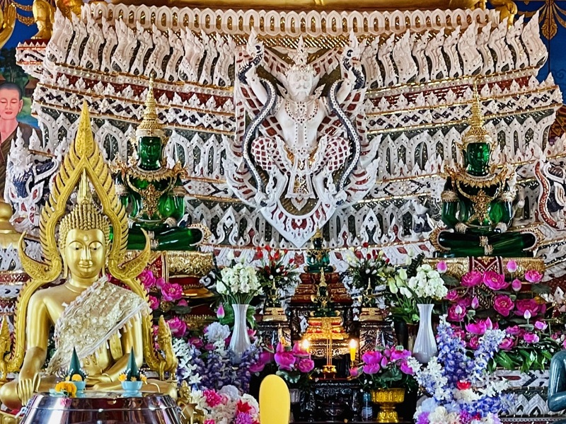 สำหรับ 4 จุดนี้อยู่ในบริเวณเดียวกัน ผมเดินไปกราบขอพรในทุกจุด ผมรู้สึกประทับใจมากครับกับการเดินขึ้นบันไดพญานาคราชเพราะสร้างได้สวยงามดูแล้วมีพลังเชื่อว่ามีเทพเทวดาสถิตอยู่ บรรยากาศก็ร่มรื่นมากครับ เดินได้เรื่อยๆ แถมยังได้ชมและถ่ายรูปใบโพธิ์ที่เกิดขึ้นเองตามธรรมชาติ สวยมากครับ