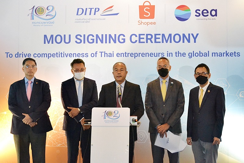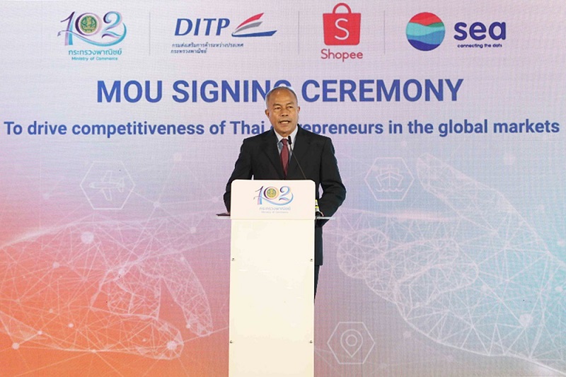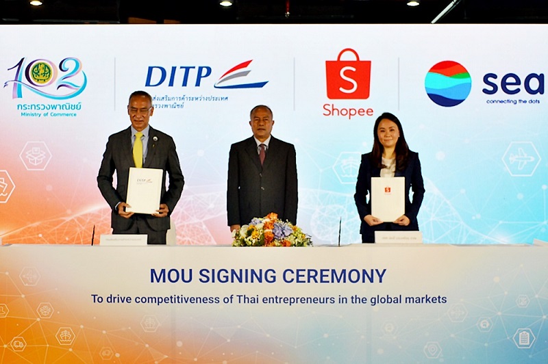 นายสินิตย์ เลิศไกร รัฐมนตรีช่วยว่าการกระทรวงพาณิชย์ เป็นประธานลงนาม MOU ระหว่าง กรมส่งเสริมการค้าระหว่างประเทศ (DITP) และ บริษัท ช้อปปี้ (ประเทศไทย) จํากัด ภายใต้เครือ Sea (ประเทศไทย) ในการร่วมมือ ด้านการส่งเสริมการค้าออนไลน์ข้ามพรมแดน หวังดันผู้ประกอบการรายย่อยของไทยกว่า 50,000 ราย ขายออนไลน์ไปต่างประเทศและสร้างมูลค่ากว่า 300 ล้านบาทใน 3 ปี
