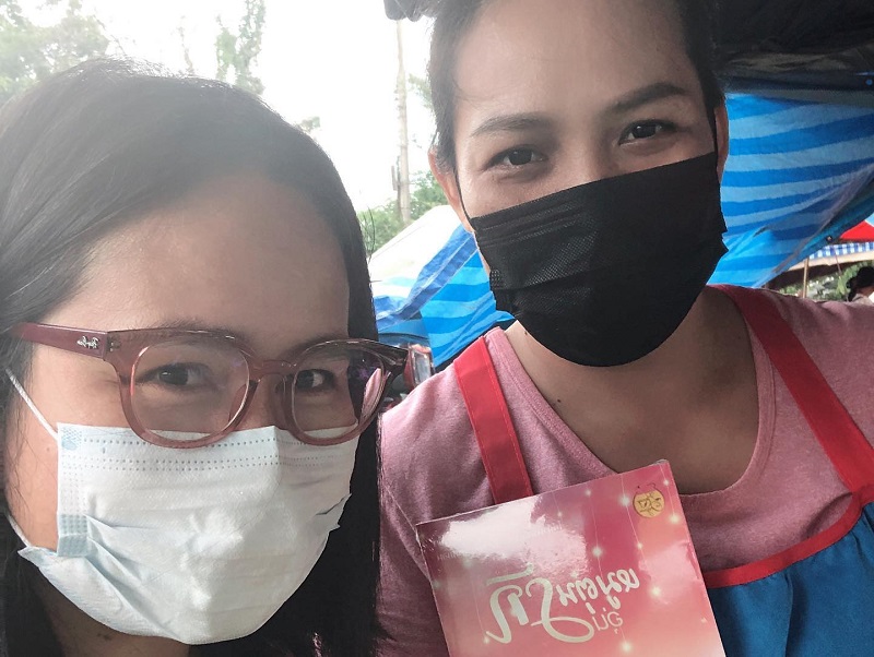 ต่ายชอบพกเล่มเอาไปถ่ายรูปด้วยค่ะ ที่ต่างจังหวัดแถวบ้านคนอาจจะไม่ได้นิยมอ่านนิยายมากเท่าไรค่ะ ยอดขายที่ได้ส่วนใหญ่มาจากอีบุ๊กและการสั่งจองเล่มทางออนไลน์มากกว่าค่ะ คำถามว่าที่ผ่านมานักเขียนจะขายนิยายในราคาเดิม 200 กว่าบาท ได้ค่าทำปก ค่าพิมพ์คืนมามั้ย? ก็ได้คืนค่ะ แต่ก็อาจจะช้าหน่อย ขายไปเรื่อยๆ เพราะบางเล่มยอดจองก็ไม่ได้หวือหวา แต่ก็พออยู่ได้ค่ะ