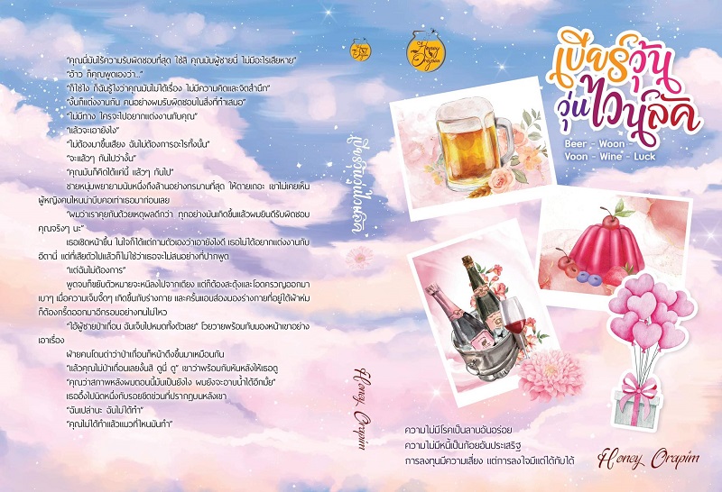 และมีเรื่องใหม่ที่กำลังเขียนอยู่ เป็นรุ่นลูกของพี่หินและน้องข้าวเหม็นใน ‘ศิลาจารัก’ ด้วยค่ะ ชื่อเรื่อง “เบียร์วุ้นวุ่นไวน์ลัค” (Beer – Woon – Voon – Wine – Luck)