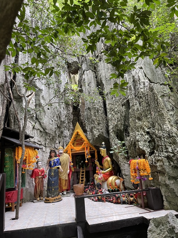 สำหรับเรื่องราวที่ 4 เขานางพันธุรัตหรือทุกวันนี้คือ “วนอุทยานเขานางพันธุรัต” บริเวณที่เป็นหุบเขาทำเป็นสวนหย่อมร่มรื่นด้วยพันธุ์ไม้นานาชนิดมีทางเดินเล็กๆ เพื่อขึ้นบันไดสูงประมาณ 150 เมตร ก่อนจะขึ้นบันไดมีศาลาข้อมูลเกี่ยวกับเขานางพันธุรัต พอเดินขึ้นบันไดไปประมาณ 70 เมตรก็จะเป็นจุดแรกคือ “ศาลพระแม่นางพันธุรัต” ขอพรได้ เช่น เรื่องโชคลาภร่ำรวยเงินทอง สุขภาพร่างกายแข็งแรง ให้ประสบผลสำเร็จเรื่องหน้าที่การงาน แต่ห้ามขอเรื่องความรัก