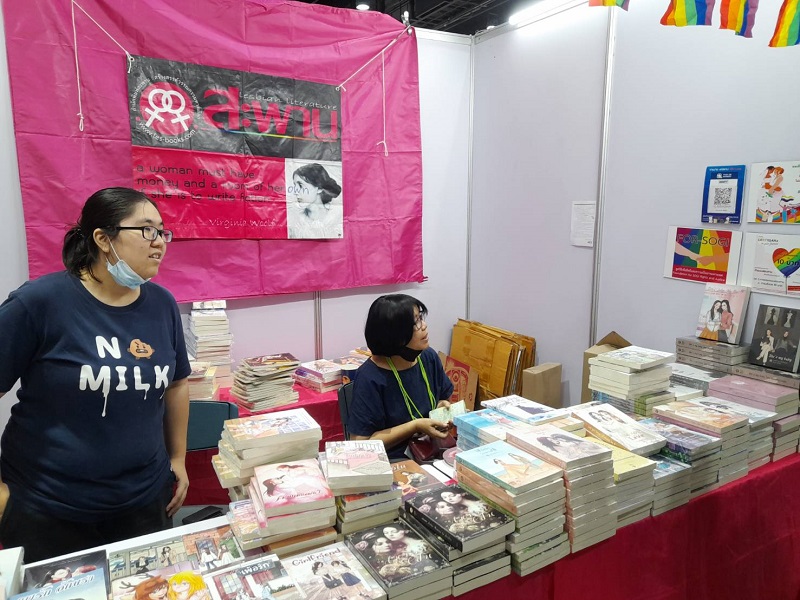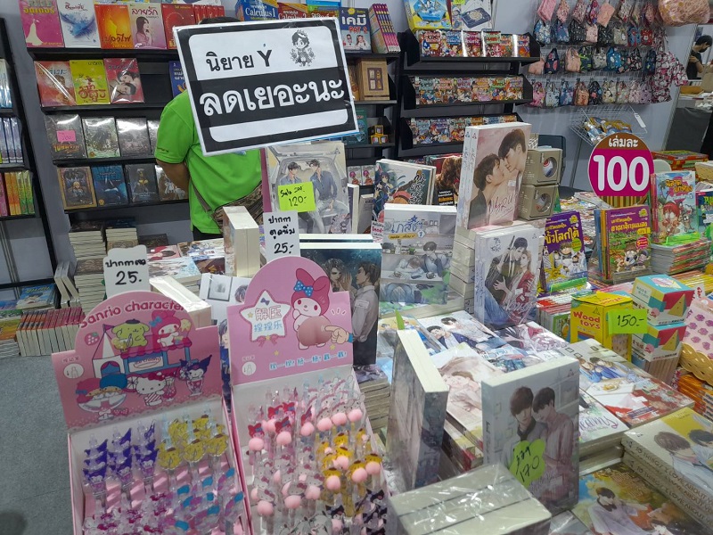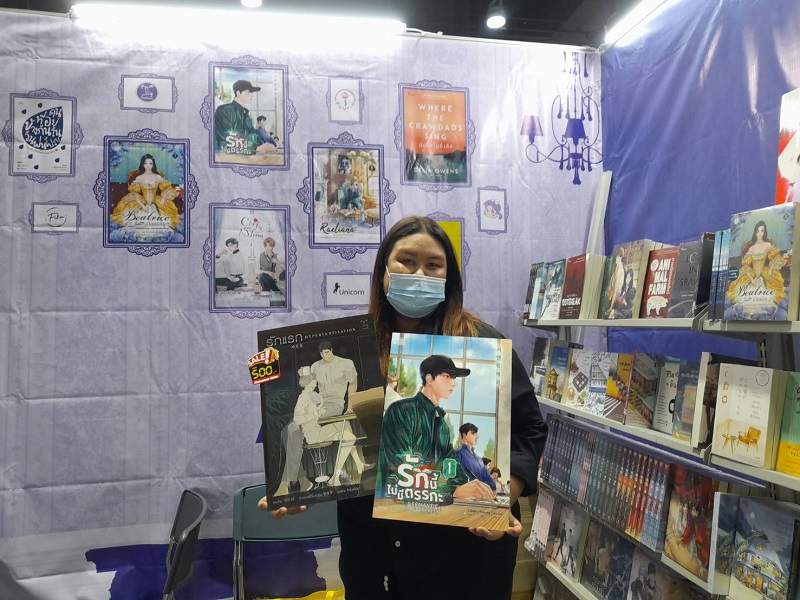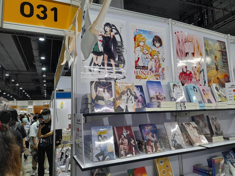 ครั้นเดินต่อไปเกือบสุดก็เจอนิยายแนวหญิงหญิง ในนาม สำนักพิมพ์ Lily House ได้เผยถึงการมาเปิดบูธปีแรกว่า “สวัสดีค่ะ ชื่อ สา นะคะ เป็นคนดูแลสำนักพิมพ์ Lily House ตอนนี้เข้าปีที่สองค่ะ เราจะนำเสนอนิยายหญิงรักหญิงเท่านั้นนะคะ ส่วนตัวก็อ่านค่ะ เพราะมีความชอบ แล้วเราทำงานร่วมกับเพื่อนอีกประมาณ 4 คน ที่มีความชอบในนิยายหญิงรักหญิงเลยมารวมตัวกันเปิดสำนักพิมพ์ขึ้นมาค่ะ เรื่องที่ขายดีที่สุดเป็นนิยายแปลเรื่อง ทำไงดีเกมนี้นางร้ายน่ารัก เป็นนิยายแปลจากประเทศญี่ปุ่นค่ะ โดยเราซื้อลิขสิทธิ์มาแล้วแปลเป็นไทยค่ะ สำหรับเสน่ห์ของนิยายหญิงรักหญิงส่วนตัวเรามองมันเป็นความอบอุ่นของเพื่อนหญิงพลังหญิงค่ะ เป็นความรักที่อบอุ่น น่ารักอะไรประมาณนี้ค่ะ นี่เป็นปีแรกที่มาเปิดลูกค้าก็ค่อนข้างเยอะ ลูกค้ามาเยอะมาก เพราะเรารับมาทั้งหนังสือต่างประเทศและของคนไทยเขียน ก็จะเป็นหนังสือที่ออกใหม่ ลูกค้าหลาย ๆ ท่านก็สนใจเข้ามา แล้วก็มีโปรส่วนลด 5-30 เปอร์เซ็นต์ค่ะ บูธเราอยู่ที่ O33 นะคะ”