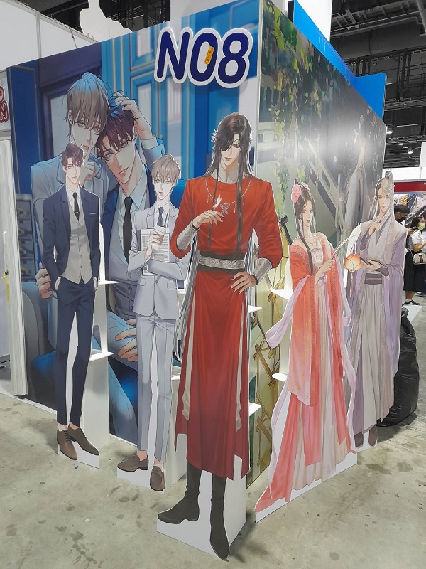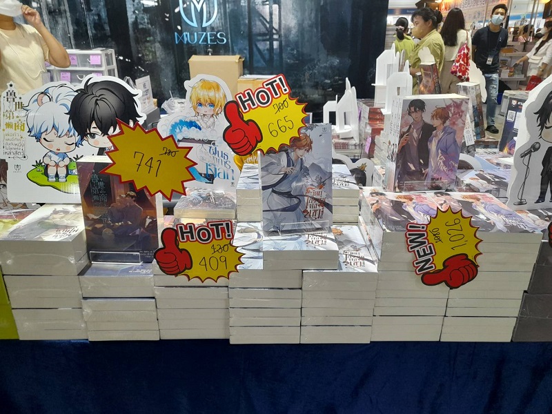 ไปที่บูธ N34 ของ สนพ.Gemini&Friends เป็นสำนักพิมพ์น้องใหม่ที่ขนนิยายวายยอดฮิตและแนวชายหญิงปกแจ่มมาพร้อมโปรพิเศษได้เผยถึงการมาเปิดบูธครั้งนี้ว่า “เราอยู่ที่บูธ N34 นะคะ ซึ่งในบูธเราจะมีหนังสือของเพื่อน ๆ มากมาย ที่เรานำขบวนมาคือ สำนักพิมพ์ Gemini Publishing ค่ะ ตอนนี้ปกเด่น ๆ ของเรามีอยู่ 3 ปกคือเรื่อง รักแรก ต่อมาก็เป็น รักนี้ไม่มีตรรกะ ซึ่งเป็นนักเขียนคนเดียวกันคือ J.Soori สำหรับรักนี้ไม่มีตรรกะ 3 เล่มจบ ซึ่งเล่ม 2 คาดว่าจะออกปลายเดือนนี้หรือต้นเดือนพฤศจิกายนเป็นพรีออร์เดอร์ค่ะ ตอนนี้เรารออนุมัติจากทางเมืองนอกแต่ส่วนเนื้อเรื่องเรียบร้อยแล้ว และอีกเรื่อง TRAPPED ติดกับ(รัก) มาเฟีย นอกจากจะมีแนววายแล้วก็มีแนวโรแมนซ์ชายหญิง และมีเป็นวรรณกรรมด้วยค่ะ ปีนี้เป็นปีแรกที่เรามาเปิดบูธก็คาดหวังว่าเป็นที่รู้จักก็พอค่ะ มีเพื่อน ๆ มาเมาส์มอยกัน แต่ตอนนี้เงียบมาก 555 เหงาค่ะ ขอฝากบูธ N34 แวะมาได้มีโปรพิเศษค่ะ”