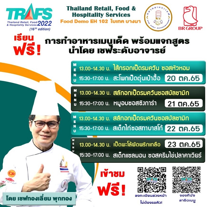 TRAFS 2022 งานแสดงสินค้า ทั้งวัตถุดิบและอุปกรณ์สำหรับโรงแรม ร้านอาหาร ร้านเบเกอรี่ ร้านคาเฟ่และ Food Service พบสินค้าหลายพันรายการจากทั่วโลกในราคาพิเศษ