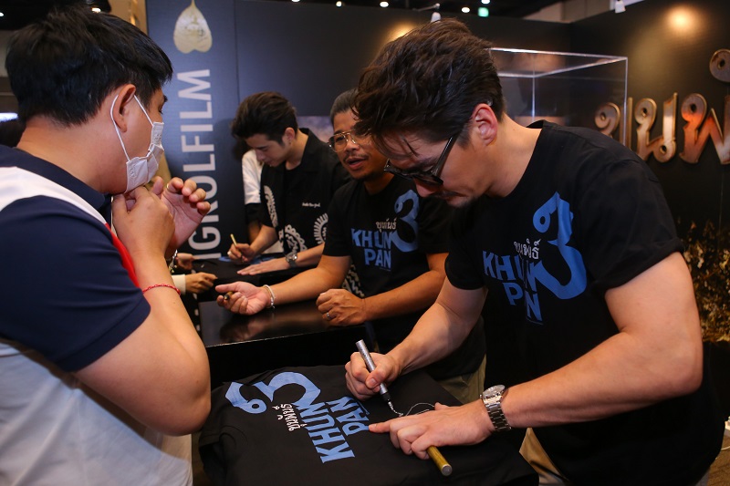 หลังการพูดคุยบนเวทีอย่างสนุกสนาน “อนันดา-มาริโอ้” และ “โขม ก้องเกียรติ” ได้นำสื่อมวลชนและแฟน ๆ ไปที่ “บูธสหมงคลฟิล์ม” (B31) เพื่อชมโมเมนต์สุดพิเศษเมื่อ “อนันดา” ปะทะ “อนันดา” กับการเผยโฉมครั้งแรกของ “โมเดลขุนพันธ์” ที่ถูกถอดแบบมาจากคาแร็กเตอร์ “ขุนพันธ์ 3” โดย OISHI STUDIO รวมถึงร่วมแจกลายเซ็นบน “T-Shirt Collection ขุนพันธ์ 3” มอบให้กับแฟน ๆ ผู้โชคดีที่มาร่วมกิจกรรมสุดเอ็กซ์คลูซีฟนี้โดยเฉพาะ