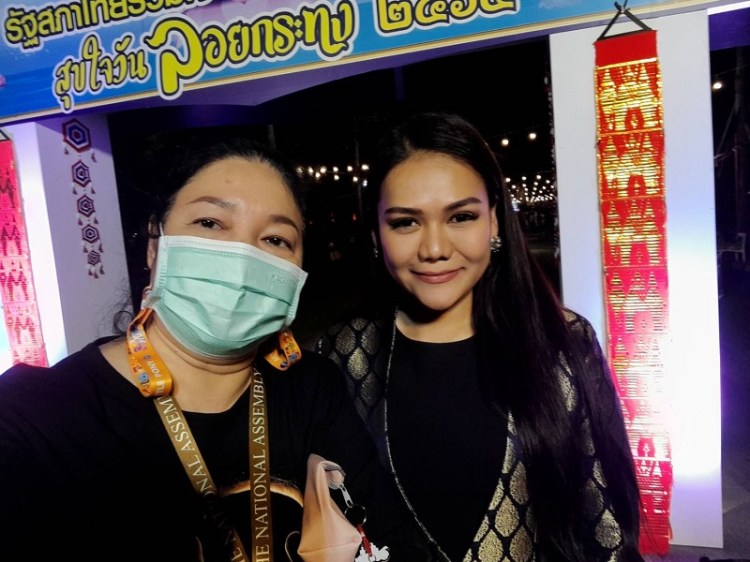 “วันนี้เป็นตัวแทนของพรรค ร่วมกับหัวหน้าพรรค นายแพทย์ ชลน่าน ศรีแก้ว ผู้นำฝ่ายค้านในสภาผู้แทนราษฎรมาร่วมสืบสานประเพณี ที่จัดงานลอยกระทงขึ้นที่รัฐสภาค่ะ สำหรับน้อง ๆ ที่เห็นนี่เป็นน้อง ๆ ที่เป็นแฟนคลับ น้อง ๆ จะติดตามไปหลาย ๆ ที่ เช่น งานกิจกรรมที่พรรค แล้ววันนี้มีงานลอยกระทงที่สภาน้อง ๆ ก็อยากจะมาร่วมสืบสานประเพณีไทย ก็ดีใจค่ะ อบอุ่นค่ะ น้อง ๆ ก็เป็นวัยเรียนกำลังศึกษาอยู่ แล้วบางคนก็ทำงานค่ะ เราก็เหมือนเป็นกำลังใจให้กัน และก็บางอย่างที่น้องมีปัญหาอยากจะปรึกษาให้เราผลักดันในแง่ของการศึกษาที่เป็นประโยชน์น่ะค่ะ อย่างเวลาเจอกันน้อง ๆ ก็จะบอกหรือบางทีทักมาทางแชท และทุกโซเชียลมีเดียที่ใช้อยู่ส่วนตัวซึ่งน้อง ๆ จะพูดถึงปัญหาการเรียน แล้วมีปรึกษาเรื่องส่วนตัวบ้างอะไรแบบเนี่ยค่ะ