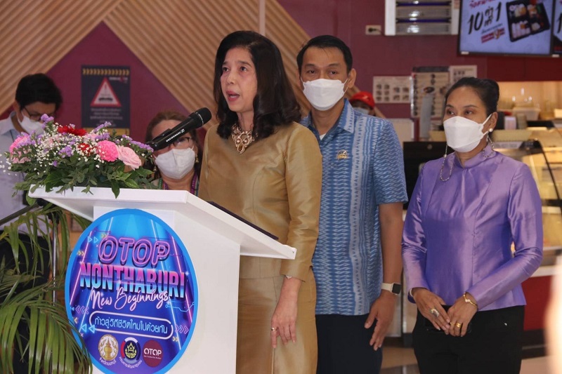 วันพุธ ที่ 9 พฤศจิกายน 2565 เวลา 15.00 น. ณ ลานโปรโมชั่น ชั้น 1 โรบินสัน ไลฟ์สไตล์ ศรีสมาน อ.ปากเกร็ด จ.นนทบุรี นายสุธี ทองแย้ม ผู้ว่าราชการจังหวัดนนทบุรี เป็นประธาน เปิดงานโครงการยกระดับผลิตภัณฑ์ชุมชน สู่ชีวิตวิถีใหม่ กิจกรรมส่งเสริมช่องทางการตลาด ภายใต้ชื่องาน OTOP NONTHABURI NEW BEGINNINGS ก้าวสู่วิถีชีวิตใหม่ไปด้วยกัน โดยมี นางรักใจ กาญจนะวีระ พัฒนาการจังหวัดนนทบุรี หัวหน้าส่วนราชการ นายอำเภอ และแขกผู้มีเกียรติทุกท่าน ร่วมในพิธีเปิดงาน
