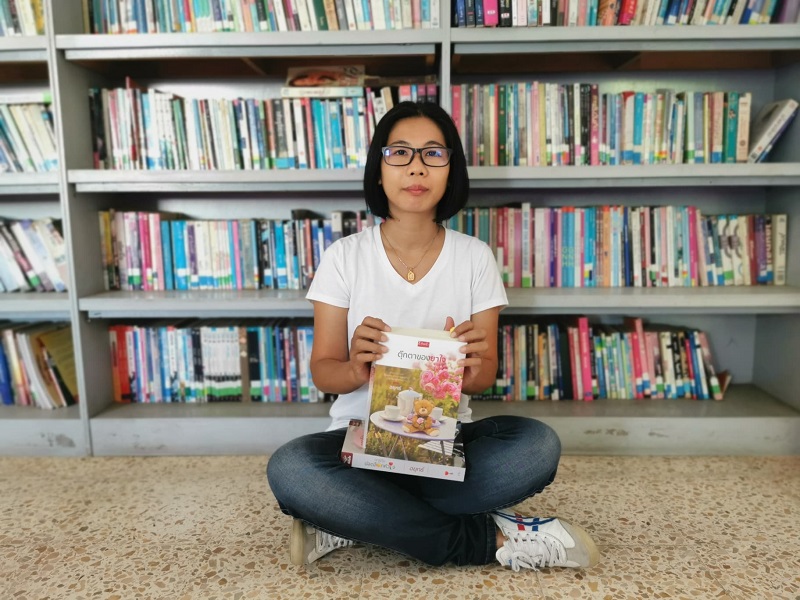 คำถามที่ถามว่า รู้สึกอย่างไรที่น้องนักเขียนชื่นชอบผลงาน และฝากชื่นชมให้กำลังใจ เป็นเรื่องที่ทำให้เรายังอยากเขียนนิยายต่อไป นอกจากความชอบแล้ว ก็คือกำลังใจจากนักอ่านค่ะ ไม่ว่าจะคำชื่นชม คำวิจารณ์แนะนำ ช่วยอุดหนุนผลงาน อยากขอบคุณทุกคนที่ยังชอบผลงานเรา และคอยผลักดันเราด้วยกำลังใจค่ะ มาที่เรื่องของการดองปก ตัวจิ้งเอง…นักอ่านดองหนังสือฉันใด นักเขียนดองปกฉันนั้น… (ใช่เหรอ) สมัยก่อนเราจะทำหนังสือทำมือเอง เวลาเจอปกสวย ๆ ก็ซื้อเก็บไว้เรื่อย ๆ (แล้วไม่ได้ใช้สักที) แต่เดี๋ยวนี้ไม่ค่อยได้ดองปกแล้วค่ะ เพราะเวลาจะเขียนนิยายเรื่องใหม่ เรากับทาง บก. สำนักพิมพ์จะปรึกษากันตั้งแต่เริ่มต้นเลย จะเขียนเรื่องอะไรแนวไหน กระบวนการต่าง ๆ เรามีบก.คอยช่วยเหลือแนะนำ กระทั่งเสร็จสมบูรณ์เป็นรูปเล่ม ตอนนี้เลยไม่ได้ซื้อปกเก็บแล้ว ยกเว้นเวลาเราอยากทำของแถมให้นักอ่านเอง อย่างพวกโปสการ์ด ปกหุ้ม หรือนิยายเล่มเล็ก ๆ ถึงจะให้นักออกแบบมาช่วยออกแบบให้