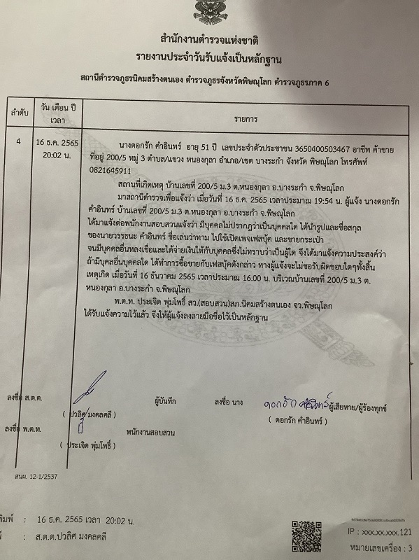 คุณแม่น้องทามวอนสื่อช่วยเตือนภัยในเรื่องนี้ เพราะมิจฉาชีพแฝงตัวมาหลายรูปแบบ น้องทามต้องทำงานเลี้ยงตัวเองส่งเสียตัวเองเลี้ยงก็ยังถูกกลุ่มมิจฉาชีพยืมชื่อไปหลอกผู้อื่นให้เกิดความเสียหาย ทางคุณแม่พอทราบเรื่องจากลูกค้าที่โดนหลอกจึงรีบไปแจ้งความไว้ ที่สถานีตำรวจภูธรนิคมสร้างตนเอง จังหวัดพิษณุโลก เมื่อวันศุกร์ที่ 16 ธันวาคม 2565 เวลา 20.02 น. และขอแจ้งลูกค้าทุกท่านที่เมตตาน้องทามด้วยการสั่งวาดกระเป๋าว่า ทางเพจเรา (น้องทาม) จะใช้บัญชีธนาคารไทยพาณิชย์ ธนาคารเดียวเท่านั้น! ส่วนชื่อบัญชี นาง ดอกรัก คำอินทร์ เเละเบอร์พร้อมเพย์ 0821645911 หรือก่อนโอนโทรสอบถามได้ที่เบอร์ดังกล่าว โดยจะไม่มีการโอนผ่านแอปTrueMoney หรือแอปใด ๆ ทั้งสิ้น