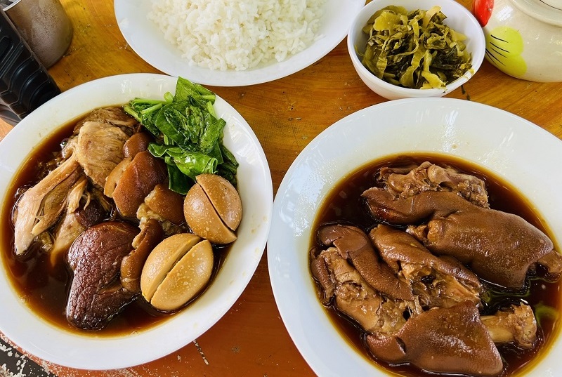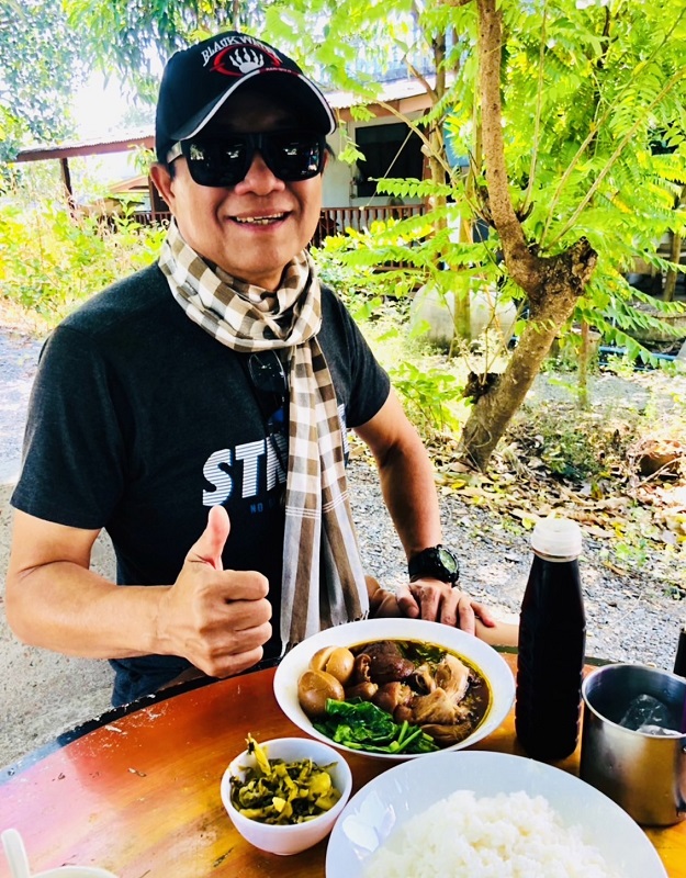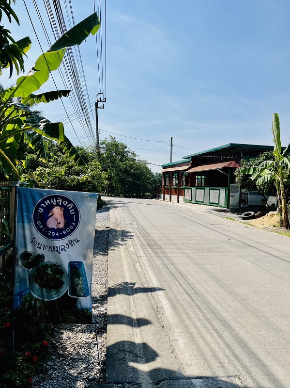 เขียนเล่าเรื่องให้ท่านผู้อ่านฟังยาวพอสมควรแล้ว ผมก็สั่งเลยครับข้าวขาหมู 1 จานมาแบบครบเครื่องตามสูตรของร้านลุงทิน มีขาหมูบวกไข่พะโล้สูตรโบราณต้องกินแกล้มกับกระเทียมสดๆ พริกขี้หนู เพื่อเพิ่มรสชาติเผ็ดๆ แต่ต้องมีพริกน้ำส้มด้วยจึงจะครบถ้วนสมบูรณ์ สำหรับเนื้อหมูบอกตรงๆ มันนุ่มมากๆ หอมมากครับ ป้าเล็กแนะนำให้กินคากิแล้วจะถูกใจเพราะเนื้อหนังนุ่มๆ เรียกว่าพอกินแล้วละลายในปากเลยครับ ฮ่าๆ พอหนุ่ม-สุทนได้กินคากิแล้วต้องร้องโอ้โห่มันนุ่มมากจริงๆ และมีกลิ่นหอมกรุ่นชวนให้กินข้าวขาหมูบวกคากิและพลาดไม่ได้ต้องโอเลี้ยง 1 แก้ว เพิ่มความสดชื่น อิ่มท้องสบายใจขอเดินชมสวนเกษตรในเนื้อที่ดินของร้านขาหมูลุงทินปลูกผลไม้ เช่น กล้วยหอม กล้วยน้ำว้า ขนุน มะนาวนั้นป้าเล็กบอกได้ผลผลิตดีค่ะ ขายบ้าง แจกบ้างตามประสาชาวสวนด้วย