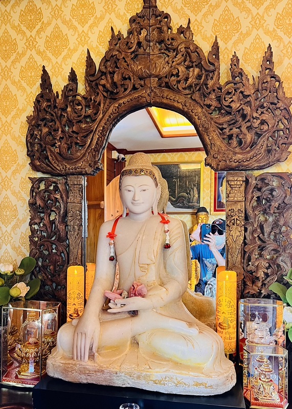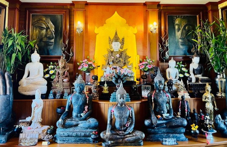 แต่สิ่งสำคัญต้องขึ้นชั้นที่ 2 ของร้านกาแฟเป็นจุดที่ 3 พลาดโอกาสไม่ได้ด้วยประการใดๆ ต้องขึ้นบันไดไปชั้น 2 เป็นหอพระพุทธรูปศักดิ์สิทธิ์ของ “ไร่เตรยาวรรณ” ประดิษฐานองค์พระพุทธรูปอยู่หลายองค์ เช่น องค์พระพุทธรูปต่างๆ ศิลปะของไทยและพระพุทธรูปศิลปะชาวไทใหญ่ประเทศพม่า นอกจากนี้ยังมีพระบรมรูปสมเด็จพระนเรศวรมหาราชและรูปหล่อพระวอ ประดิษฐานอยู่ด้วยและถือว่าเป็นสิ่งมหัศจรรย์นั้นคือ “ตัวช้างเหล็ก” ช้างเหล็กด้านหน้าสิ่งศักดิ์สิทธิ์คนผู้ดูแลหอพระพุทธรูปเล่าเรื่องราวให้ฟังก่อนจะทำพิธียกตัวช้างเหล็กบอกว่า ถ้ายังไม่ได้ตั้งจิตใจอธิษฐานขอพรสิ่งศักดิ์สิทธิ์ จะยกไม่ขึ้น ขอบอกว่าหนักจริงๆ พอตั้งจิตอิษฐานแล้ว ถ้าสำเร็จก็จะยกช้างขึ้น ถ้าไม่สำเร็จก็ยกไม่ขึ้นเรียบร้อยแล้วผู้ดูแลหอพระก็ให้ผมเองนั่งคุกเข่าทำตัวสบาย ๆ แล้วสวดมนต์ตั้งนะโม 3 จบ เสร็จแล้วตั้งใจอธิษฐานขอพรสิ่งศักดิ์สิทธิ์ภายในหอพระพุทธรูปอธิษฐาน โดยยกครั้งที่ 1 ถ้าหากสิ่งที่ขอขอได้หรือประสบผลสำเร็จขอให้ยกช้างหนักหรือยกไม่ขึ้น ครั้งที่ 2 เช่นกันถ้าประสบผลสำเร็จขอให้ยกช้างเบาหรือยกขึ้นได้ปรากฏว่าช้างเหล็กยกขึ้นมาได้เบาจริง ๆ เสร็จแล้วก็สั่นระฆังเพื่อบอกให้สิ่งศักดิ์สิทธิ์ทราบว่าสิ่งที่ขอพรได้สำเร็จแล้วครับ อันนี้เป็นความเชื่อของท่าน ท่านผู้อ่านทุกท่านถ้ามีโอกาสได้ไปเที่ยวอำเภอพบพระ จังหวัดตาก ต้องแวะได้ครับ “ไร่เตรยาวรรณ” แล้วต้องขึ้นบันไดไปชั้น 2 เข้าหอพระพุทธรูปศักดิ์สิทธิ์เพื่อกราบบูชาขอพรสิ่งศักดิ์สิทธิ์โดยเฉพาะการเสี่ยงทายยกช้างเหล็กจากหนักให้เป็นเบาได้เป็นสิ่งมหัศจรรย์ยิ่งนัก หนุ่ม’สุทน รู้สึกประทับใจมาก ๆ ครับ