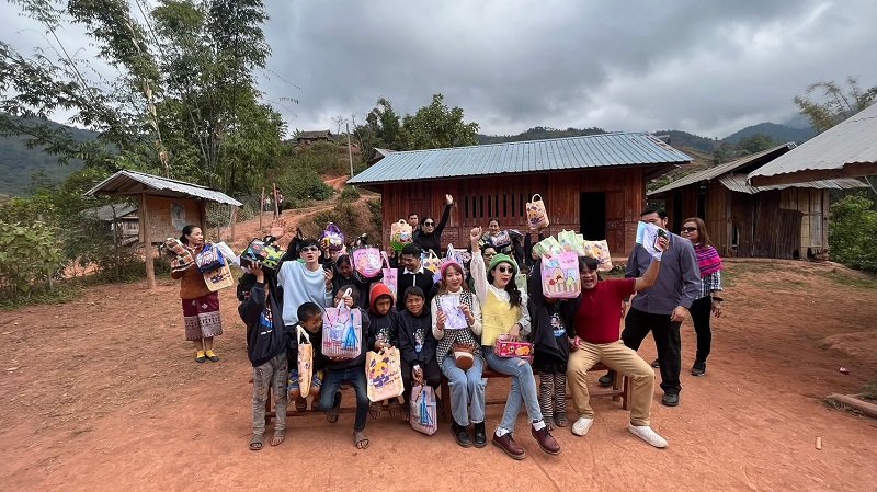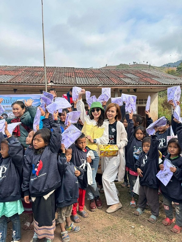 คุณนุ้ย สุวิมล ธนินกุลนาถ ผู้บริหารเครื่องดื่ม ME Energy Drink มี เอนเนจี้ดริงก์ พลังที่เราเลือกได้ เปิดใจด้วยรอยยิ้มสดใสว่า “ตอนแรกเตรียมใจแล้ว จะลำบากแต่ไม่คิดว่าจะเดินทางยาวนานหลายสิบชั่วโมงขนาดนี้ น้องๆ อยู่ที่นี่ ขาดแคลนหลายอย่าง เราไปช่วยเหลือในจุดที่เราช่วยได้ เช่น การบริจาคชุด-ผ้าห่มกันหนาว เพราะที่นี้หนาวมากๆ แจกเสื้อผ้า อุปกรณ์การเรียน ขนม อาหาร และมอบเงินจำนวนหนึ่งให้กับ 3 โรงเรียนไปด้วย และจริงๆ ที่เมืองไทย เราไปแจกของต่างๆ หลายจุดหลายจังหวัดมาแล้วค่ะ ก็เลยอยากไปปันน้ำใจให้กับลาว ประเทศเพื่อนบ้านเราด้วย”