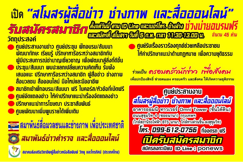 ติดต่อ โทร. 099-612-0756 ID Line: ponews