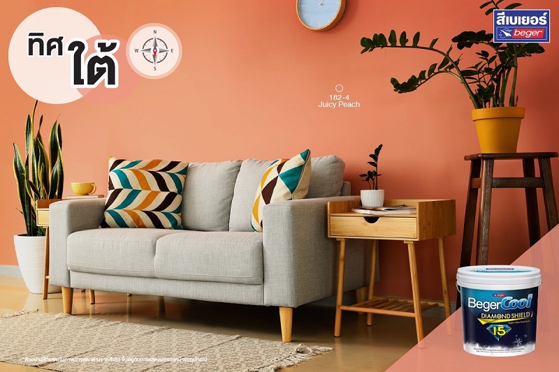 ทิศแห่งธาตุไฟ ช่วยสนับสนุนเรื่องชื่อเสียงและความสำเร็จในชีวิต เหมาะกับสีโทนร้อน อย่างสีแดง สีส้ม สีเหลือง ซึ่งตามตำราจีนสีเหลืองหมายถึงเงินทอง เช่น สีเหลืองนวล Summer Heat 086-4 หรือจะเลือกใช้สีที่เกิดจากการผสมระหว่างสีส้มกับสีชมพู เช่น สีพีช Juicy Peach 182-4 ก็ได้ ใครที่เน้นเรื่องทำมาค้าขาย เงินทองไหลมาเทมา อยากมีเงินใช้ไม่ขาดมือ ไปซื้อมาทาได้เลย