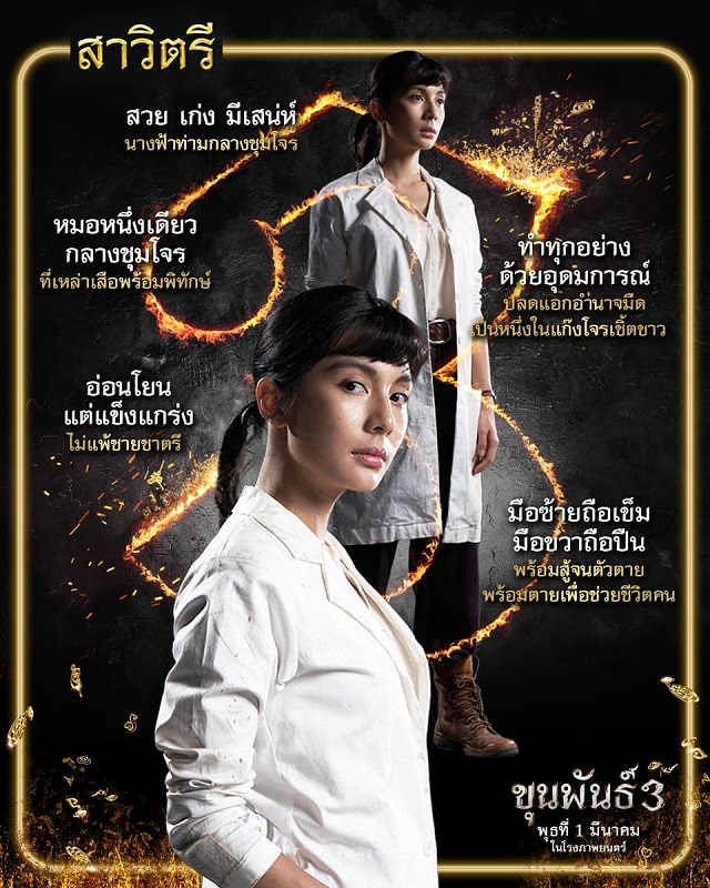 ไม่เพียงเท่านั้นยังมีอีก 2 นักแสดงรุ่นใหม่ไฟแรงที่เข้ามาร่วมสร้างความสมบูรณ์แบบเพื่อปิดไตรภาคในครั้งนี้ นั่นคือ “ฟ้า ษริกา สารทศิลป์ศุภา” นักแสดง, ยูทูบเบอร์สุดฮอต และ สาวอินดี้จาก “ฮาวทูทิ้ง…ทิ้งอย่างไรไม่ให้เหลือเธอ” จับพลิกบทบาทมาถือปืนและเข็มฉีดยาในบท “สาวิตรี” หมอสาวผู้เป็นดั่งดอกฟ้าในชุมเสือ อ่อนโยน และแข็งแกร่ง ไม่แพ้เหล่าบรรดาเสือร้าย
