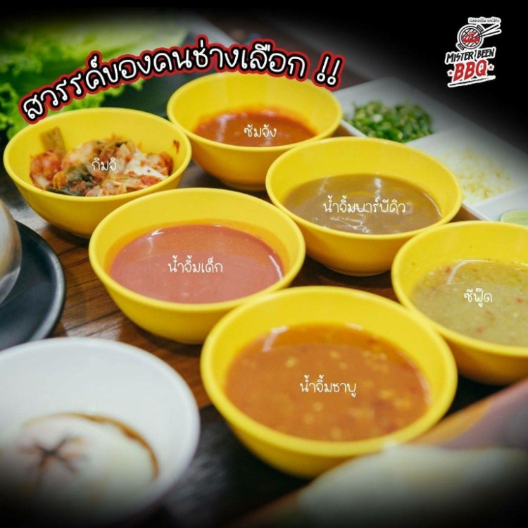 ที่ถามว่าร้านชาบูกับบาร์บีคิวต่างกันตรงไหน ถ้าหากลูกค้าเลือกทานเป็นบาร์บีคิว (ปิ้ง-ย่าง) สามารถเลือกเตาแบบ 2in1 ที่จะเป็นเตาปิ้งรอบ ๆ แล้วหม้อตรงกลาง ซึ่งจะทานได้ทั้งปิ้ง-ย่างและชาบูไปพร้อม ๆ กัน ฟิน เลือก 1 ได้ถึง 2 พร้อมกันนี้ก็มี น้ำจิ้มบาร์บีคิว สูตรเฉพาะของทางร้านมิสเตอร์บีน / ซัมจัง น้ำจิ้มแบบเกาหลี ฟินเวอร์
