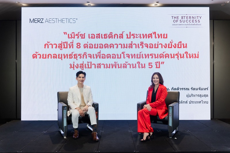 ประเทศไทย วันที่ 10 มีนาคม 2566 – เมิร์ซ เอสเธติกส์ ประเทศไทย บริษัทชั้นนำระดับโลก ผู้ผลิตและจัดจำหน่ายเครื่องอัลเทอร่า และเวชภัณฑ์สำหรับใช้ในคลินิกเสริมความงาม เพื่อทุกความมั่นใจของคนไทย เฉลิมฉลองการก้าวสู่ปีที่ 8 ตอกย้ำความสำเร็จในการเป็นผู้นำด้านนวัตกรรมความงาม ด้วยยอดขายทะลุหนึ่งพันล้านบาท หรือเติบโตแบบ Triple Digit ที่ 111% พร้อมตั้งเป้าการเติบโตภายใน 5 ปี ที่สามพันล้านบาท ซึ่งสอดคล้อง[1]ภาพรวมตลาดเวชศาสตร์ความงามไทยที่โตอยู่ที่ 6 หมื่นล้านบาท เช่นเดียวกับอัตราการเติบโตเฉลี่ย 80% ต่อปี ที่ทำให้ธุรกิจในกลุ่มนวัตกรรมความงามเติบโตรุดหน้าอย่างต่อเนื่อง