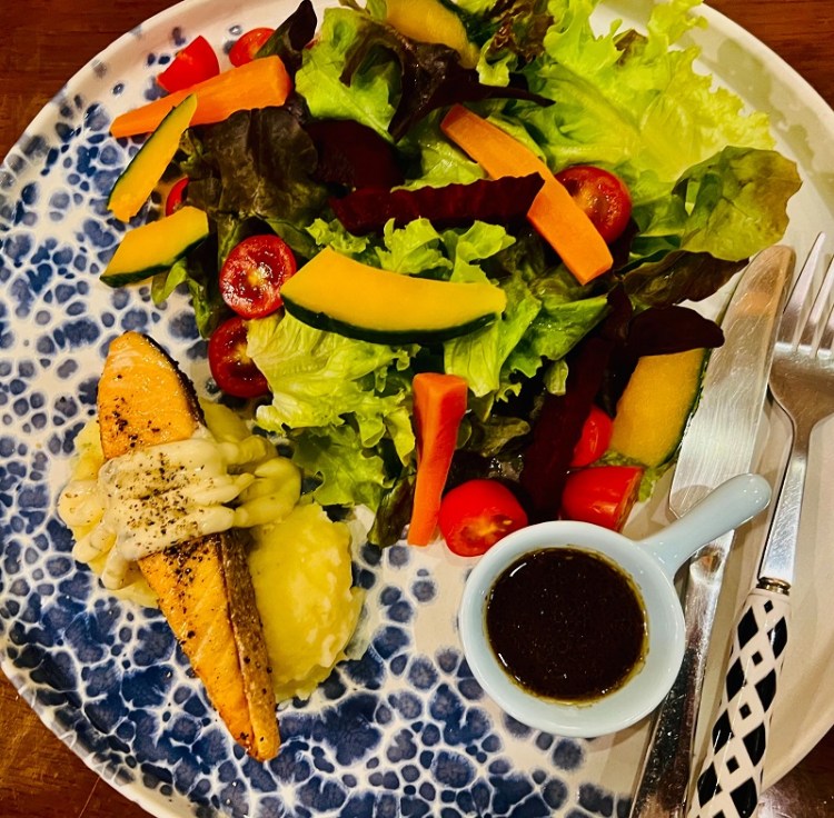 เมนูอาหารเพื่อสุขภาพของผมในวันนี้ขอแนะนำ สเต็กสันคอหมูแจ่วแซบ ขอบอกเลยว่าเมนูนี้ถูกใจหนุ่ม-สุทนครับ นอกจากนี้ทางร้านยังมีอีกหลายหลายเมนูให้เลือก เช่น สลัดผักสดๆ สลัดผักสดปลาแซลมอน สลักกุ้งทอดและอีกหลายหลายเมนู หรือจะสั่งไอศกรีมผักโขมไม่ขม ซิกเนเจอร์เท่านั้น ต้องไปลองกันเองครับ