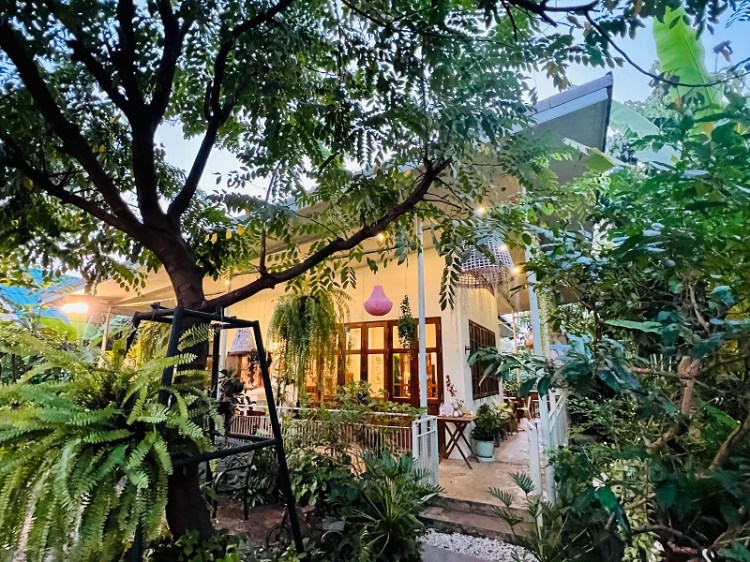 ตัวร้าน ก็เป็นบ้านที่อยู่อาศัยในลักษณะบ้านสวนเรือครับก็เหมือนเราไปนั่งกินข้าวในบ้านของบ้านเพื่อนสักคนอาหารจะมาจานใหญ่ใหญ่หน่อยนะครับแต่เต็มไปด้วยคุณภาพ กินด้วยความมั่นใจว่าเป็นอาหารปลอดภัยกับสุขภาพของคุณอย่างแน่นอน ในสวนเกษตรโอนพื้นที่ของที่ร้านหรือบ้านนี้ติดกับร้านอาหารมากด้วยผลไม้ท้องถิ่น เช่น ส้มโอ กล้วยหอม กล้วยน้ำหว้า มะม่วง และที่สำคัญที่นี่ปลูกผักออร์แกนิคเอง แล้วนำมาปรุงให้ลูกค้าภายในร้านสมชื่อเลยครับ “ปลูกกับปรุง”