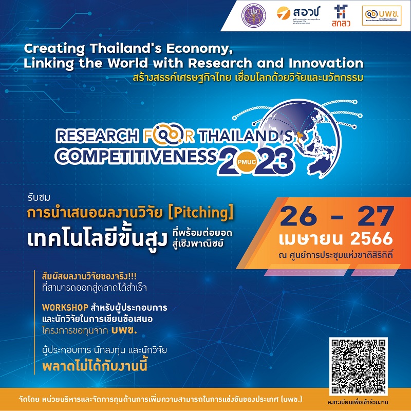บพข.ชูงานวิจัยและนวัตกรรมไทยสู่โลกธุรกิจระดับชาติ-นานาชาติ “PMUC Research for Thailand’s Competitiveness 2023” “บพข. สร้างสรรค์เศรษฐกิจไทย เชื่อมโยงโลกด้วยวิจัยและนวัตกรรม” ระหว่างวันที่ 26-27 เมษายน ณ ศูนย์การประชุมแห่งชาติศูนย์ฯสิริกิติ์ อ่านเพิ่มเติม “บพข.ชูงานวิจัยและนวัตกรรมไทยสู่โลกธุรกิจระดับชาติ-นานาชาติ “PMUC Research for Thailand’s Competitiveness 2023” “บพข. สร้างสรรค์เศรษฐกิจไทย เชื่อมโยงโลกด้วยวิจัยและนวัตกรรม” ระหว่างวันที่ 26-27 เมษายน ณ ศูนย์การประชุมแห่งชาติศูนย์ฯสิริกิติ์”