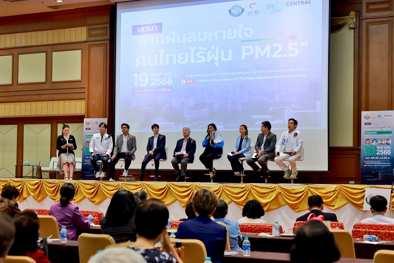 นาทีนี้ประเด็นเร่งด่วนที่ไม่แพ้เรื่องปากท้องคนไทย คือ ปัญหามลพิษที่มาจากฝุ่น PM 2.5 ที่ประชาชนทุกภูมิภาคกำลังเผชิญหน้าและจะส่งผลต่อสุขภาพในระยะยาว ด้วยเหตุนี้ แพทยสมาคมแห่งประเทศไทย ในพระบรมราชูปถัมภ์ และ ชมรมลมวิเศษ ได้หยิบยกประเด็นการแก้ไขปัญหาสิ่งแวดล้อมกับสุขภาพมาร่วมพูดคุยกันในงานเสวนา “สานฝันลมหายใจคนไทยไร้ฝุ่น PM 2.5” นำโดย นพ.สุขุม กาญจนพิมาย นายกแพทยสมาคมพร้อมด้วย รศ.นพ.สุทัศน์ รุ่งเรืองหิรัญญา ประธานที่ปรึกษาชมรมลมวิเศษ และ สุพัตรา จิราธิวัฒน์ ในฐานะประธานชมรมลมวิเศษ โดยได้รับเกียรติจาก นพ.ณรงค์ อภิกุลวณิช รองปลัดกระทรวงสาธารณสุข เป็นประธานในพิธี เผยถึงตัวเลขผลกระทบของ PM 2.5 พร้อมรับฟังเสวนา “สานฝันลมหายใจคนไทยไร้ฝุ่น PM 2.5” นำโดย พรพรหม วิกิตเศรษฐ์ ที่ปรึกษาผู้ว่าราชการกรุงเทพมหานคร ร่วมเสวนาในประเด็น “สานฝัน กทม. สู่การเป็นมหานครปลอดฝุ่น PM 2.5” ร่วมด้วย ศ.นพ.ชายชาญ โพธิรัตน์ พูดคุยในหัวข้อ “สุขภาพวิกฤตเมื่อมลพิษ PM 2.5 มาเยือน..ซ้ำแล้วซ้ำอีก” พร้อมด้วยการดีเบตครั้งสำคัญก่อนการเลือกตั้งกับหัวข้อ “นโยบายพรรคการเมือง เพื่อลมหายใจคนไทยไร้ฝุ่น PM 2.5” จาก 8 พรรคการเมืองใหญ่ ได้แก่ เพื่อไทย, ไทยสร้างไทย, ก้าวไกล, ชาติไทยพัฒนา, ประชาธิปัตย์, ภูมิใจไทย, เสรีรวมไทย และ พลังประชารัฐ ซึ่งนับเป็นเวทีที่ประชาชนจะได้รับฟังวิสัยทัศน์และแนวทางการป้องกัน PM 2.5 อีกด้วย
