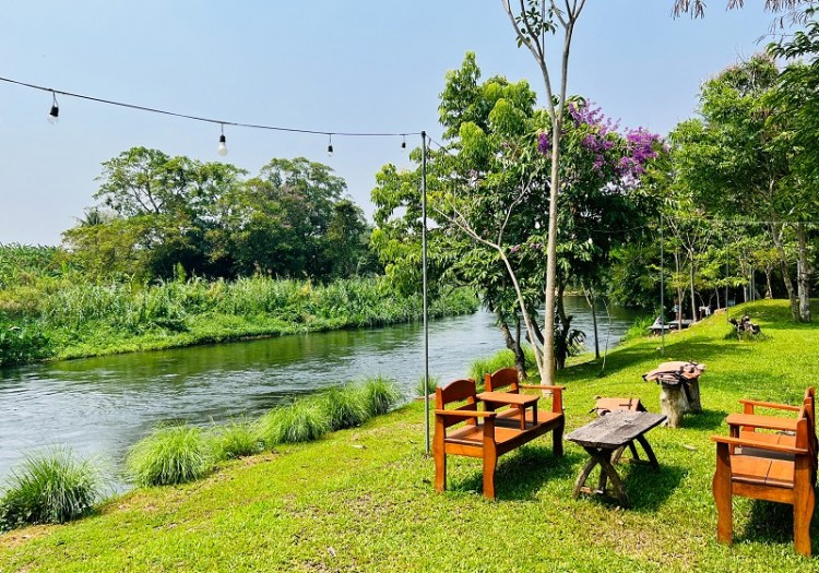 ส่วนจุดที่ 3 พักผ่อนชิลล์ๆ ทริปนี้ผมเลือก “บ้านสวนสบายใจ” มีบ้านพัก ร้านอาหารประเภทพื้นบ้านให้บริการ มีที่พักผ่อนริมน้ำเพชรบุรีอากาศบริสุทธิ์ในสวนผลไม้โดยเฉพาะทุเรียน เงาะ มังคุดและผักปลอดภัยแบบพื้นบ้านบอกตรงๆ อุดมสมบูรณ์จริงๆ
