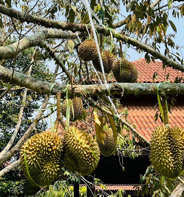 ทุเรียนของบ้านสวนสบายใจจะตัดขายได้ก็ประมาณช่วงปลายเดือนพฤษภาคมไปแล้วครับ ถ้ามีโอกาสได้พักผ่อนในบ้านสวนสบายใจช่วงทุเรียนสุกดีก็ถือว่าโชคดีครับ คอทุเรียนต้องถูกใจแน่ๆ แต่ถ้าถามว่าทำไมทุเรียนบ้านสวนสบายใจจึงมีรสชาติอร่อยถูกใจคอทุเรียน ก็ได้คำตอบ หายข้อข้องใจจากเจ้าของสวนมาว่า ดินที่นี่มีแร่ธาตุต่างๆ ที่เหมาะสมกับการปลูกทุเรียนแล้วให้รสชาติดีได้ผลผลิตดี เพราะเป็นดินแม่น้ำ มีแร่ธาตุธรรมชาติสะสมอยู่มากจากแม่น้ำเพชรบุรีที่พัดพาลงมาจากเทือกเขาตะนาวศรี ซึ่งเป็นต้นแม่น้ำเพชรบุรีช่วงสมัยที่ยังไม่มีเขื่อนกั้นแม่น้ำเพชรบุรี ขณะที่ในช่วงหน้าฝนสมัยเรียกว่าน้ำหลากหรือน้ำท่วมพื้นที่ดินเป็นเดือนๆ แร่ธาตุต่างๆ ที่ลงมากับน้ำก็จมอยู่ใต้ดินนานแสนนานก็กลายเป็นดินดีน้ำดีนี่แหละจุดเริ่มต้นของความอร่อยของทุเรียนบ้านสวนสบายใจ อำเภอแก่งกระจาน จังหวัดเพชรบุรีครับ ยังไม่ต้องเชื่อจนกว่าจะได้ลองชิมด้วยตัวเองครับ ส่วนผมนั้นชิมมาหลายรอบแล้วขอบอกว่ารสชาติอร่อยถูกใจหนุ่ม-สุทนสุดๆ ไปเลยครับ ผมก็แอบเป็นของทุเรียนอยู่ด้วยเหมือนกันนะครับ