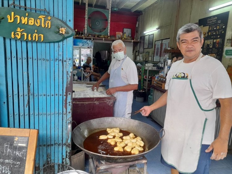 ตามจริงปาท่องโก๋ธรรมดาคือตัวเอก ลองลงมาก็ปาท่องโก๋ภูเก็ตกับซาลาเปา มันตีคู่กัน สมัยก่อนรุ่นพ่อเปิดตีสองครึ่งปิดเก้าโมงถึงสิบโมง สมัยก่อนทำส่งเยอะ ส่งร้านแถว ๆ นี้ไม่ได้ไปไหนมาก รุ่นผมเปิดหกโมงจนถึงของหมด แล้วตอนโควิดผมไม่ได้ปิดร้านเลย ขายได้ ขายแบบแช่แข็ง ทั้งหวาน ทั้งซาลาเปา และทั้งเกลียว แล้วลูกค้าไปอบเอาเอง ลูกชายเขาคิด แต่สมัยก่อนผมก็คิดเหมือนกัน แต่ไม่มีหม้ออบเลยไม่ได้ทำได้แค่คิด พอมาเป็นรุ่นลูกและลูกสะใภ้เขามาช่วยกิจการเลยคิดทำปาท่องโก๋แช่แข็งตอนโควิด ช่วงนั้นโควิดลูกค้าไม่ได้เข้ามานั่งที่ร้านก็สั่งแต่แช่แข็งไป อยู่ได้เลย พอโควิดผ่านไปก็กลับมาทำเหมือนเดิม คือตอนแรกเขาไม่เอานะ กว่าลูกชายจะมาทำได้ กว่าเขาจะรู้ตัวว่าทำงานนอกบ้านกับทำงานในบ้านอย่างไหนดีกว่ากัน พอเขารู้ทำในบ้านของดีกว่าเลยกลับมาทำที่บ้าน อยู่ข้างนอกเป็นขี้ข้า แต่มาทำกันเองแบบนี้ใครจะว่า ว่าก็คือสอน พ่อแม่สอนแค่นั้น ตอนนี้ผมสบายใจลูกชาย ลูกสะใภ้และหลานมาช่วยกันทำมาหากิน แล้วเราก็คิดดูว่าแล้วเราจะอยู่ได้สักเท่าไหร่ แต่เราได้สอนให้ลูกเราทำเป็นแล้วทั้งกาแฟและปาท่องโก๋ ผมพอใจแล้ว