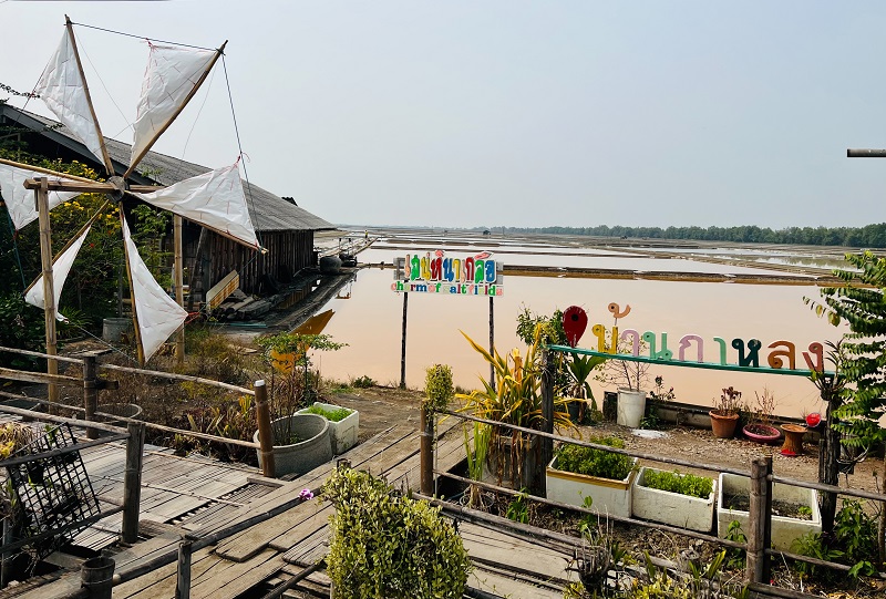 ส่วนจุดที่ 4 ซื้อของฝากในชุมชนได้นะจ๊ะ เช่น ปลาอินทรีย์ กะปิเคยตาดำและเกสรเกลือ หรือจะนั่งร้านอาหารท้องถิ่นอาหารทะเลสด ๆ ก็มีจ้านั่งรับลมพัดผ่านเย็น ๆ ช่วงเวลาแสงตะวันอ่อน ๆ สุดยอดมาก ๆ ครับ