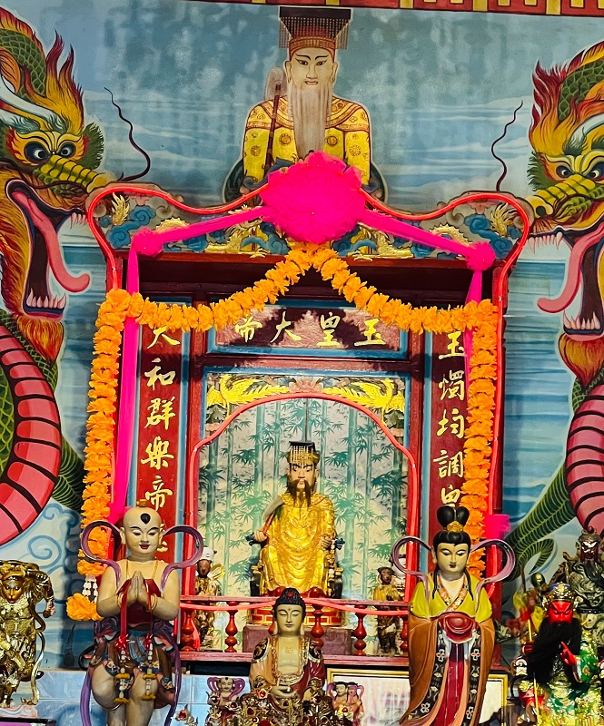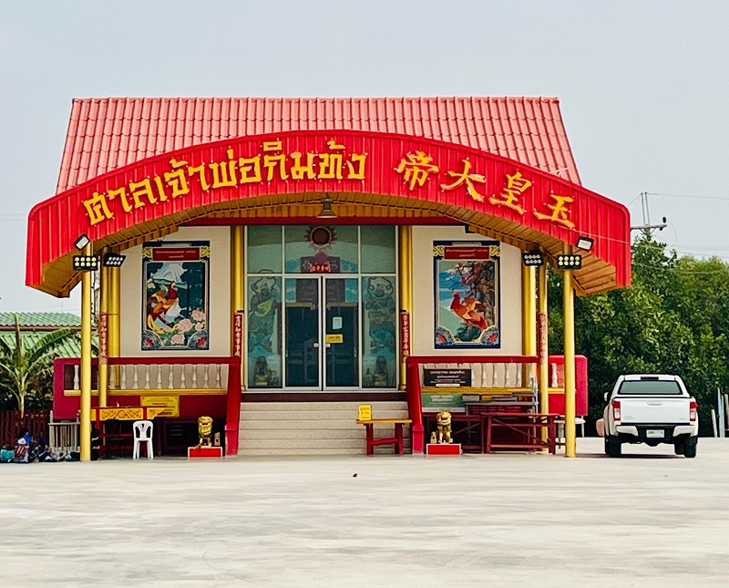 ส่วนจุดที่ 2 พลาดไม่ได้ต้องแวะกราบบูชาขอพรสิ่งศักดิ์สิทธิ์ภายใน “ศาลเจ้าพ่อกิมท้ง” ซึ่งเป็นศาลเจ้าเก่าแก่ของชาวจีนที่อพยพมาจากจีนแผ่นดินใหญ่เมื่อครั้งสมัยแผ่นดินพระบาทสมเด็จพระจุลจอมเกล้าเจ้าอยู่หัว รัชกาลที่ 5 แล้วไปอัญเชิญ “องค์เทพเจ้ากิมท้ง” มาจากญาติซึ่งเป็นชาวจีนตลาดห้องแถวริมน้ำคลองอัมพวาเมืองแม่กลองหรือจังหวัดสมุทรสงคราม พอตั้งเป็นศาลเจ้าแล้วชาวบ้านเชื่อถึงความศักดิ์สิทธิ์โดยเฉพาะเรื่องค้าขายให้เจริญรุ่งเรืองหรือออกทะเลก็ขอให้ปลอดภัยกลับมาบ้าน กราบขอพรกันได้ครับ