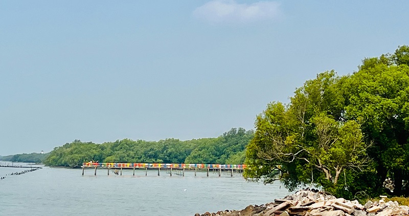 จุดที่ 3 ลัดเลาะวิถีชาวชุมชนไปถึง “สะพานสายรุ้ง” สีสันสายรุ้งสมชื่อเคียงคู่ทะเลโคลนจ้า ถ่ายรูปเล่นกันได้สีสันสวยแซ่บสมใจมาก ๆ ครับ