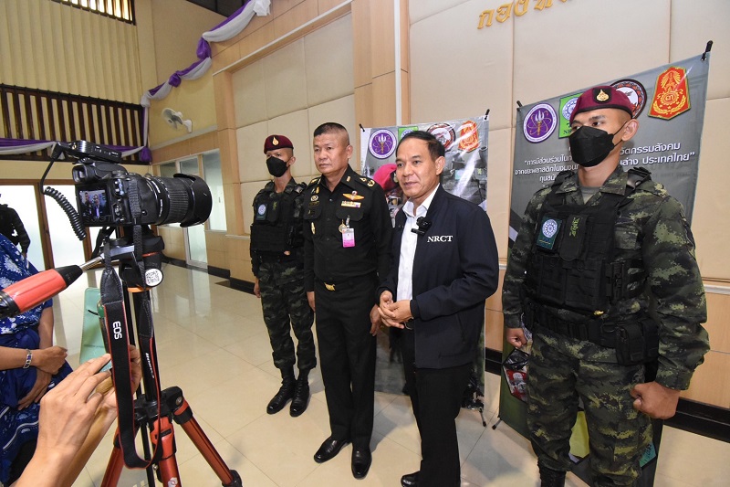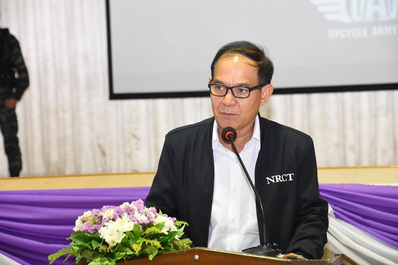 นายเอนก บำรุงกิจ รองผู้อำนวยการสำนักงานการวิจัยแห่งชาติ กล่าวว่า วช. ภายใต้กระทรวง อว. เป็นองค์กรหลักด้านการวิจัยและนวัตกรรมของประเทศ ที่มีบทบาทสำคัญด้านการขับเคลื่อนและสนับสนุนการดำเนินโครงการวิจัยขนาดใหญ่ ที่มีความท้าทายและมีเป้าหมายชัดเจน รวมถึงการส่งเสริมและถ่ายทอดองค์ความรู้ตลอดจนผลักดันให้เกิดการนำผลงานวิจัยและนวัตกรรม ไปสู่การใช้ประโยชน์ในมิติต่าง ๆ ที่ก่อให้เกิดการพัฒนาและสามารถแก้ไขปัญหาสำคัญของประเทศได้อย่างเป็นรูปธรรม งานวิจัยนวัตกรรมเสื้อเกราะกันกระสุนเป็นผลสำเร็จของการสนับสนุนนักวิจัยที่ได้รับทุนจาก วช. จนได้ผลงานสร้างสรรค์ยกระดับขยะพลาสติกที่มีจำนวนมาก จากกระบวนการมีส่วนร่วมให้เป็นผลิตภัณฑ์ที่ส่งเสริมความปลอดภัยให้กับทหารของประเทศและจะเป็นส่วนหนึ่งที่ช่วยเสริมรายได้ให้กับคนในชุมชนจากการนำเอาขยะจากท้องทะเลมารวมกับผ้าทอมือ อันเป็นสิ่งแทนใจของความรักและความผูกพันของคนในครอบครัวและชุมชนเป็นเกราะป้องกันทหารของประเทศ ผลผลิตและต้นแบบอันเกิดจากการวิจัยครั้งนี้จะก่อให้เกิดการจัดการขยะพลาสติกและการมีส่วนร่วมของผู้คนในชุมชน ซึ่งเป็นกระบวนการที่สำคัญในการสร้างความยั่งยืนให้กับประเทศไทยได้ต่อไป