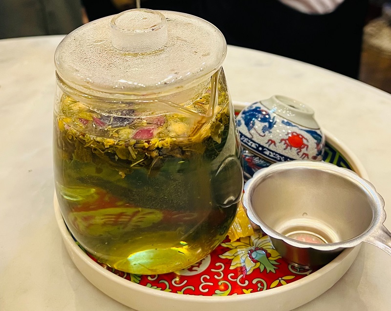 ร้านที่ 2 ชื่อ “หลงโถว คาเฟ่น้ำชา” มีแห่งเดียวในย่านเยาวราช มีน้ำชาหมื่นลี้ แต่ที่สำคัญคือเซ็ทติ่มซำมงคลสุดยอดด้วยน้ำชาดอกไม้หลงโถว ชิมแล้วต้องบอกว่า ว้าว! เข้ากันมากครับสำหรับการกินติ่มซำกับน้ำชาร้อนๆ รวหอมของดอกหอมหมื่นลี้ แถมเป็นติ่มซำมงคลให้ได้ชิมอีกด้วยครับ พูดได้คำเดียวว่า สุดยอด! ต้องไปลองนะครับ