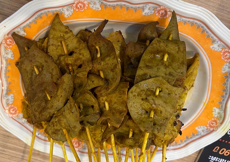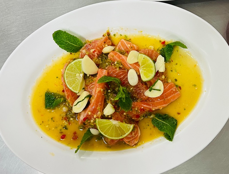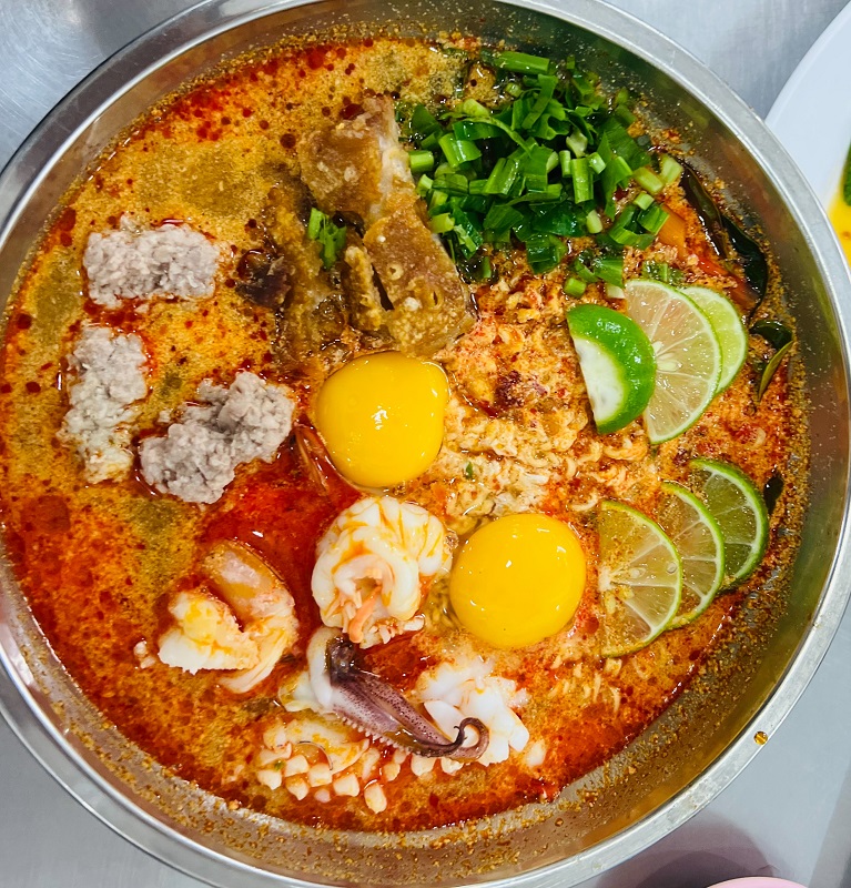 ได้เวลาพอสมควรก็เดินข้ามถนนมา ร้านที่ 5 ชื่อ “ร้านเจ๊โอว” เมนูยอดฮิดจริงๆ ต้องสั่งคือ “มาม่าโอ้โห” คล้ายๆ ต้มยำมาม่าผมเองได้ชิมแล้วก็ร้องโอ้โห อร่อยสมชื่อตามด้วยยำปลาแซลมอนและยำหมูกรอบ ขอบอกเลยครับร้านนี้คนแน่นจริง ๆ ต้องได้ลองชิมนะครับ