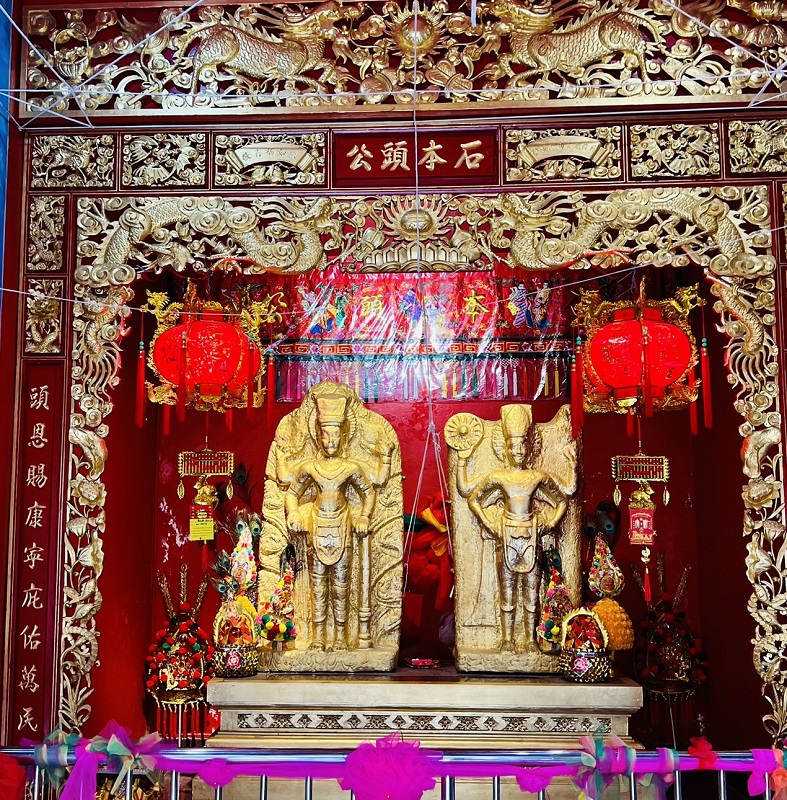 เรื่องที่ 7 ต่อมาท่านบรรหาร ศิลปอาชา เมื่อครั้งทำธุรกิจส่วนตัวได้ขอพรองค์เจ้าพ่อหลักเมืองถ้ากิจการเจริญรุ่งเรืองร่ำรวยเงินทองจะมาสร้างศาลเจ้าให้ใหม่ครั้งนี้ทางเจ้าหน้าที่ศาลเจ้าก็เล่าเรื่องให้ฟังว่าพอจะรื้อศาลเจ้าเดิมออกเพื่อสร้างศาลเจ้าใหม่แต่ก็ทำไม่ได้ทุกคนเกิดอาการป่วยตลอดเวลาด้วยเหตุนี้จึงต้องสร้างศาลเจ้าใหม่ขึ้นครอบตัวศาลเจ้าเล็ก ๆ ของเดิมไว้ถึงทุกวันนี้ นี่คือส่วนหนึ่งเท่านั้นสำหรับเรื่องราวขององค์เจ้าพ่อหลักเมืองคือเทวรูปพระวิษณุหรือพระนารายณ์ 4 กร แกะสลักด้วยหินสีเขียวประดิษฐานคู่องค์ที่สูงเรียกองค์พี่ส่วนองค์เตี้ยเรียกว่าองค์น้อง ส่วนทุกวันนี้ทางศาลเจ้าได้แกะสลักองค์พระวิษณุหรือพระนารายณ์จำลองเพื่อให้ทุกท่านสามารถปิดทองได้เพื่อความเป็นสิริมงคลให้กับชาวประชาทั้งหลายที่มากราบขอพรครับ