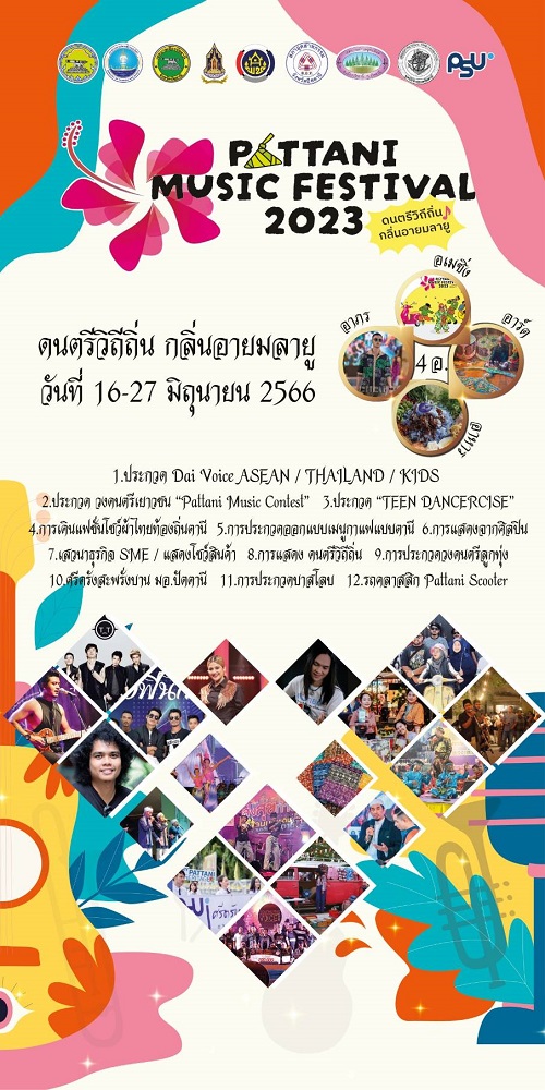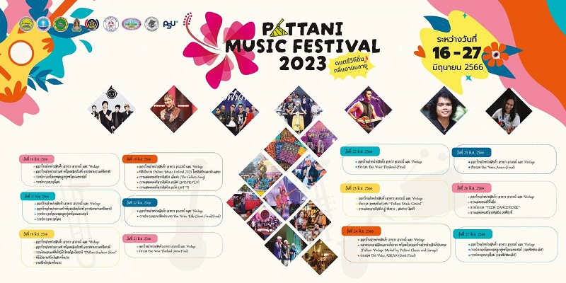 จํงหวัดปัตตานี สำนักงานท่องเที่ยวและกีฬาจังหวัดปัตตานี Present Pattani Music Festival 2023 “ดนตรีวิถีถิ่น กลิ่นอายมลายู” หนึ่งเดียวของเทศกาลดนตรีที่นำความหลากหลายทางด้านวัฒนธรรมมารวมกัน เตรียมพัฒนาและยกระดับกิจกรรมการท่องเที่ยวของจังหวัดปัตตานีให้เป็นที่รู้จัก ดึงดูดนักท่องเที่ยว หวังกระตุ้นเศรษฐกิจ โดยงานจัดขึ้นระหว่างวันที่ 16-27 มิถุนายน 2566 ณ บริเวณสวนจ้าวทะเล ตำบลรูสะมิแล อำเภอเมืองปัตตานี จังหวัดปัตตานี