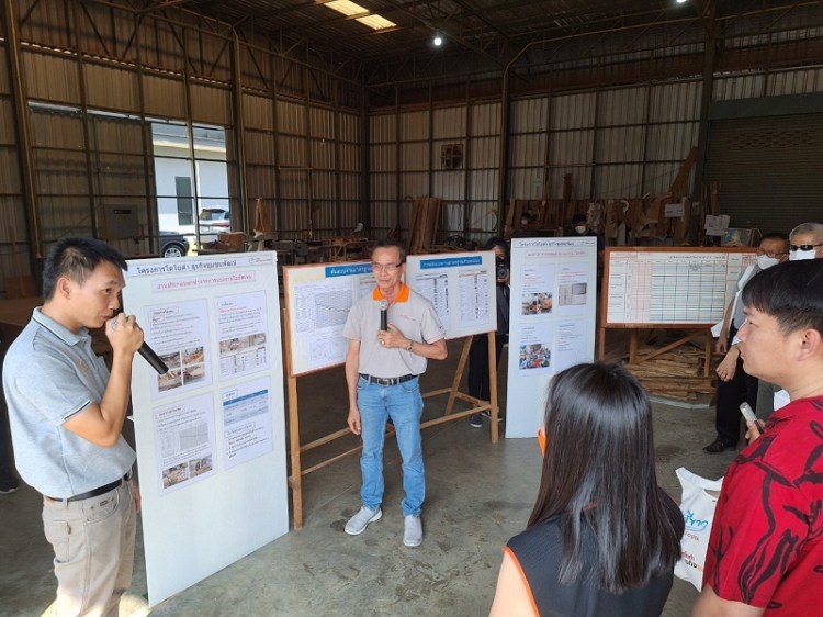 3. ปัญหาการเก็บสต็อกไว้มากเกินความจำเป็น ทำให้ต้นทุนจม เมื่อเก็บไม้ไว้นานยังอาจสร้างความเสียหายให้เกิดขึ้นได้ด้วย เช่น ไม้ขึ้นรา แตกหัก นอกจากนี้ยังไม่มีการจัดแยกประเภทและขนาดให้ชัดเจน ขาดการจัดลำดับการใช้งานก่อนมาหลัง ทำให้ต้องเสียเวลาในการค้นหาเมื่อต้องนำมาใช้งานจริง จึงได้จัดทำบอรด์มาตรฐานการปฏิบัติงาน ตั้งแต่ประเภทของไม้ที่ใช้ จำนวน ขนาด และบอรด์ควบคุมงานเข้า – ออก ตั้งแต่คำสั่งซื้อ จนถึงกำหนดเวลาส่งมอบงาน เพื่อใช้เป็นแนวทางและกำหนดเป้าหมายในการทำงาน จากปัญหาที่ทำให้สูญเสียโอกาสในการขาย เพราะไม่สามารถให้คำตอบระยะเวลาการผลิตที่แน่นอนได้ ก็สามารถทำได้