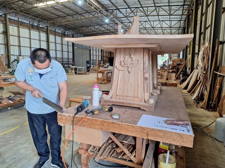 1. ปัญหาการใช้วิธีผลิตแบบ Single Station คือ ช่าง 1 คนต่อ 1 โมเดล โดยลงมือทำเองทุกขั้นตอน ตั้งแต่แบกไม้ ตัดไม้ เลื่อยไม้ ไสไม้ ไม่มีการแบ่งหน้าที่ชัดเจนให้กับผู้ช่วย ทำให้ต้องใช้เวลาในการผลิตจากการเตรียมวัสดุและขึ้นโครงนานเฉลี่ยมากกว่า 50 ชั่วโมง/เฟอร์นิเจอร์ 1 ตัว ต้นทุนการผลิตจึงสูงขึ้น จึงได้ใช้ระบบ Share Workload ปรับการทำงานระหว่างผู้ช่วยช่างกับช่าง โดยให้ช่างเป็นผู้ประกอบอย่างเดียวประจำโต๊ะ และให้ผู้ช่วยเป็นคนเดินงาน เพื่อเตรียมขึ้นรูปชิ้นส่วนต่าง ๆ ให้เบื้องต้น ทำให้ลดขั้นตอนการทำงานลง สามารถส่งมอบงานได้เร็วขึ้น เช่น จากการผลิตโครงไม้สามารถลดลงจาก 50 ชั่วโมง เหลือเพียง 43 ชั่วโมง