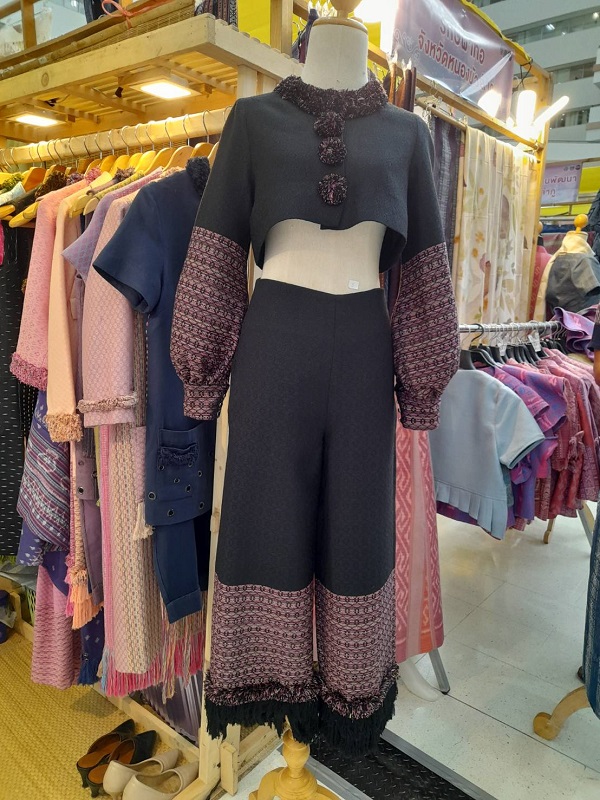 แล้วอ๋อยได้ไปเรียนต่อสถาบันออกแบบนานาชาติชนาพัฒน์ ที่สุขุมวิท 101 อ๋อยอยู่กับโอท็อปแล้วก็แม่ ๆ ที่ทอผ้าในจังหวัดหนองบัวลำภูเยอะ ก็อยากรู้การออกแบบดีไซน์ลวดลายและเทคนิกต่าง ๆ จะเอาอะไรมาเติม เลยไปเรียนเพิ่มเราจะได้เข้าใจถ้าออกแบบลวดลายเพิ่ม หรือออกแบบดีไซน์ที่มีความต่างจริง ๆ เราก็ใฝ่ฝันอยากจะเรียนนะคะ อย่างสถาบันออกแบบนานาชาติชนาพัฒน์ถ้าเราไปเรียนต่างประเทศก็หลายล้าน คง โห…เราคงเอื้อมไม่ถึง ก็มาเรียนที่เมืองไทย เราเรียนเพิ่มเติม แล้วก่อนหน้าเราก็มีโอกาสได้ไปฮังการี แล้วในปี 2562 เราได้นำผ้าไทยไปเดินที่ลอนดอนแฟชันวีค โห ว้าวเลยค่ะ ฝรั่งมาจองชุดนี้ ๆ และบางชุดเราให้พรีออร์เดอร์ อย่างล่าสุดเราไปที่ไทเปพอลงเวทีผู้เข้าชมงานก็ชี้เอาชุดนี้ ๆ วันนี้ไม่ได้เอาชุดที่ไปเดินแฟชันวีคที่ลอนดอนมาค่ะ ที่ผ่านมาเราไป ลอนดอน ฮังการี ไทเป มุมไบ เดลี อินโดนีเซีย ไปหลายประเทศ ซึ่งต่างประเทศเขาต้อนรับผ้าไทยเราดีมากค่ะ หลังจบงานเขาก็มีทักแชทถามมาว่า มีขายที่ไหนค่ะ