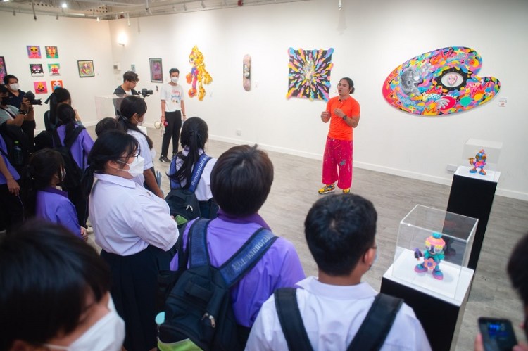 บริษัท ทางด่วนและรถไฟฟ้ากรุงเทพ จำกัด (มหาชน) หรือ BEM ผู้ให้บริการทางพิเศษและรถไฟฟ้า MRT สายสีน้ำเงินและสายม่วง ได้ชวนน้อง ๆ จากโรงเรียนใกล้เขตทางพิเศษและรถไฟฟ้า MRT ทั้ง 4 แห่ง ได้แก่ โรงเรียนวัดนิมมานรดี, โรงเรียนสุวรรณารามวิทยาคม, โรงเรียนวัดราชบพิธ และโรงเรียนวัดนวลนรดิศ ออกเดินทางไปกับ Happy Journey with BEM ภายใต้คอนเซปต์ Art Journey เปิดประสบการณ์งานศิลปะใจกลางเมือง ได้เรียนรู้การสร้างงานศิลปะในรูปแบบ NFT ให้เกิดมูลค่า ซึ่งเป็นอีกหนึ่งช่องทางสร้างรายได้ของคนรุ่นใหม่จาก “The Tu!!”-นายณัชพล ตุ๊เสงี่ยม ศิลปิน NFT รายแรก ๆ ของเมืองไทย ที่สร้างงานศิลปะให้มีมูลค่าถึงหลักแสน และยังเป็นศิลปินหลักเจ้าของ Solo Exhibition ใน Metro Art ซีรีส์ 2 “Playable Art : อาร์ตเล่นได้” ณ MRT สถานีพหลโยธิน ด้วย นอกจากศิลปินจะถ่ายทอดเทคนิค NFT ให้กับน้อง ๆ แล้วยังเปิดโอกาสให้เหล่าเยาวชนร่วมทำกิจกรรมเวิร์กชอปเพ้นต์หมวก แต่งแต้มสีสัน ออกแบบลวดลายเฉพาะบุคคลให้ไม่ซ้ำใคร ทำให้ผู้ร่วมกิจกรรมต่างอิ่มเอมไปด้วยความสุข รอยยิ้ม และเสียงหัวเราะ