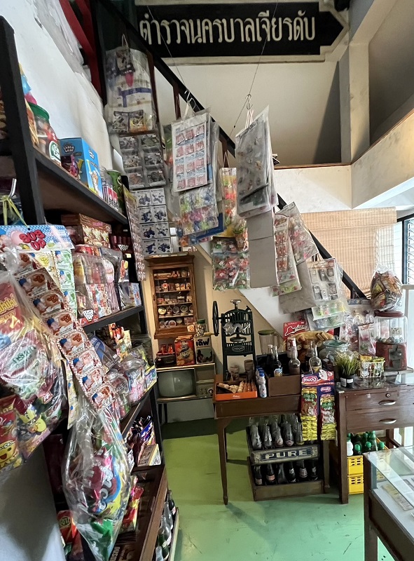 ชั้นล่างสุด จัดแสดงเรื่องราวเกี่ยวกับร้านขายยาแบบชาวจีนโบราณหรือสมุนไพรจีนซึ่งร้านนี้ได้มาจากตลาดเก่าจังหวัดอุทัยธานี พี่ยามากมายจริงๆ ครับ ไม่ว่าจะเป็นยารุ่นไหนต่อรุ่นไหนยุคไหนแทบจะมีทุกยุคเลยเหรอครับ ถัดมาเป็นร้านโชห่วยหรือร้านค้าขายของหลายประเภท ส่วนซุ้มประตูขึ้นบันไดชั้นไปที่ 2 เป็นภาษาจีนที่เกี่ยวกับเรื่องยาและสุขภาพสมบูรณ์มากหาชมได้ยาก