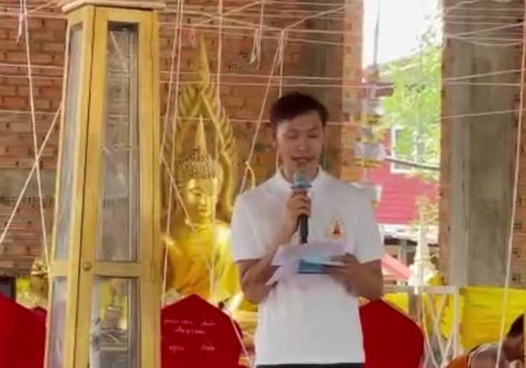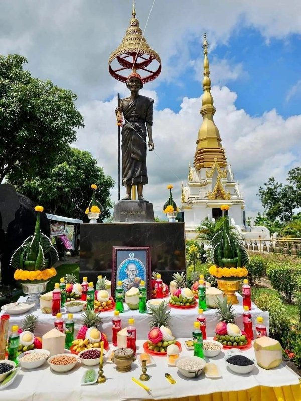 ช่วงเช้ามีพิธีบวงสรวงหน้าเจดีย์บรรจุสรีรสังขารหลวงปู่ ท่านผู้นำชุมชน กำนันสุจิตตรา อาษากิจ ท่านอิศรา โพธิ์เงิน นายอำเภอน้ำเกลี้ยง ได้กล่าวต้อนรับคณะศิษยานุศิษย์, คุณแม่แก้ว สุดารัตน์ (แม่ณเดชน์ คูกิมิยะ)และคณะผู้มาร่วมงานในพิธีอย่างเป็นทางการ