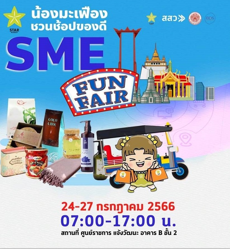 สสว. จัดงาน “น้องมะเฟือง ชวนช้อปของดี SME Fun Fair” ณ ศูนย์ราชการฯ แจ้งวัฒนะ 24-27 ก.ค.นี้