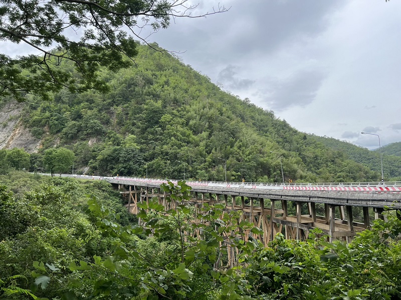จุดที่ 2 เช็คอินกันต่อบริเวณ “สะพานห้วยตอง” หรือสะพานพ่อขุนผาเมือง เป็นสะพานโค้งไปเชื่อมภาคอีสานไปจังหวัดขอนแก่นหรือไปทางจังหวัดเลย สำหรับสะพานห้วยตองมีตอม่อสูงประมาณ 50 เมตร ถือว่ามีตอม่อสูงที่สุดในประเทศไทย เก็บภาพถ่ายบรรยากาศและสัมผัสอากาศเย็นสดชื่นมาก ๆ ครับ แล้วก็ออกเดินทางในเส้นทางอุทยานแห่งชาติน้ำหนาวไปถึงสามแยกเข้าเส้นทางอำเภอน้ำหนาวก็แวะที่ “ไร่ผาหมอก”