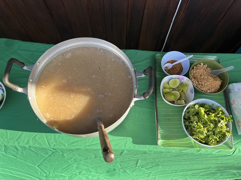 “บ้านไร่แสนสุขโฮมสเตย์” บริการอาหารเช้าด้วยข้าวต้มหมูและไข่ต้มที่สำคัญคอกาแฟสดถูกใจคือกาแฟดริปบวกกับบรรยากาศเย็น ๆ มันช่างเป็นเวลาแห่งความสุขจริง ๆ ครับ 07.30น. ได้เวลาบอกลา “บ้านไร่แสนสุขโฮมสเตย์” ออกเดินทางกันต่อครับ