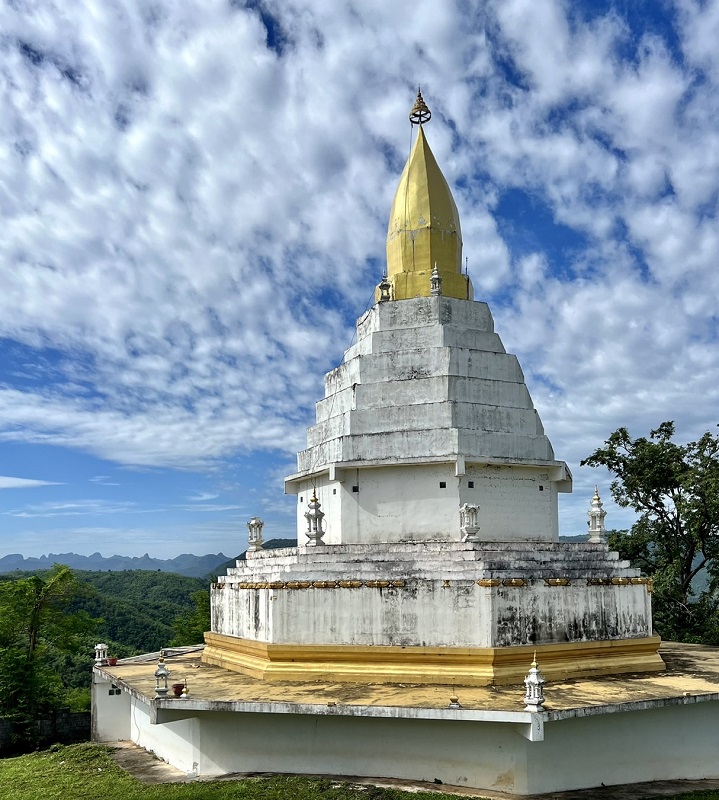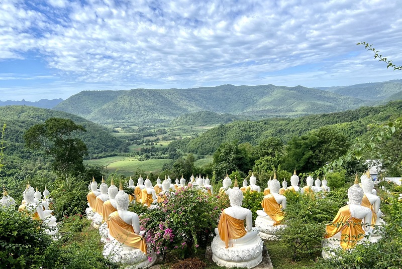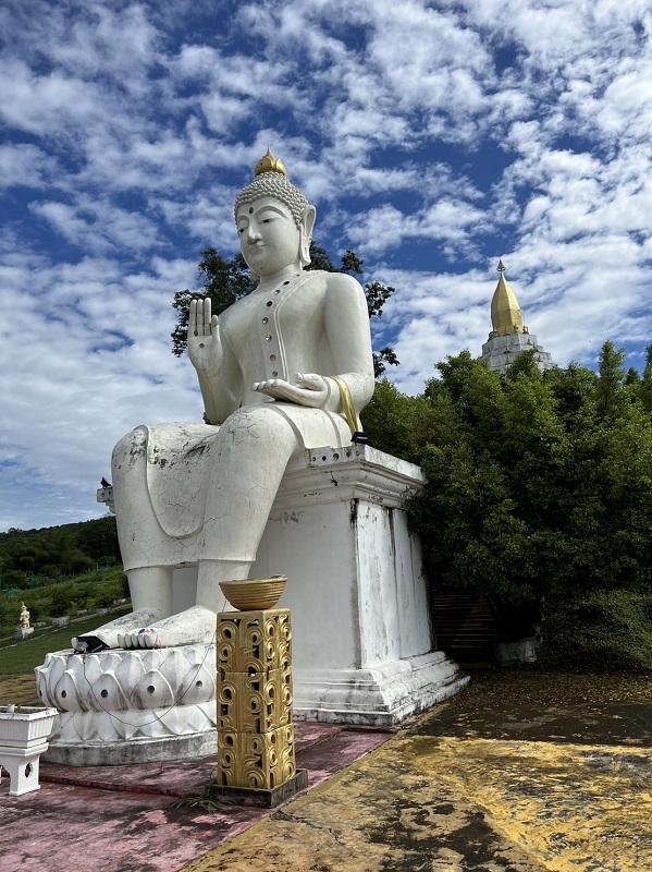 จุดที่ 7 เดินทางต่อไป “สถานที่ปฏิบัติธรรมภูเตศวร” ตั้งอยู่บริเวณหุบเขามีองค์พระธาตุเจดีย์ประดิษฐานองค์พระพุทธรูปประทับนั่ง บริเวณนี้วิวทิวทัศน์สวยงามจริง ๆ เสร็จแล้วก็เดินทางต่อไปที่ว่าการอำเภอน้ำหนาว