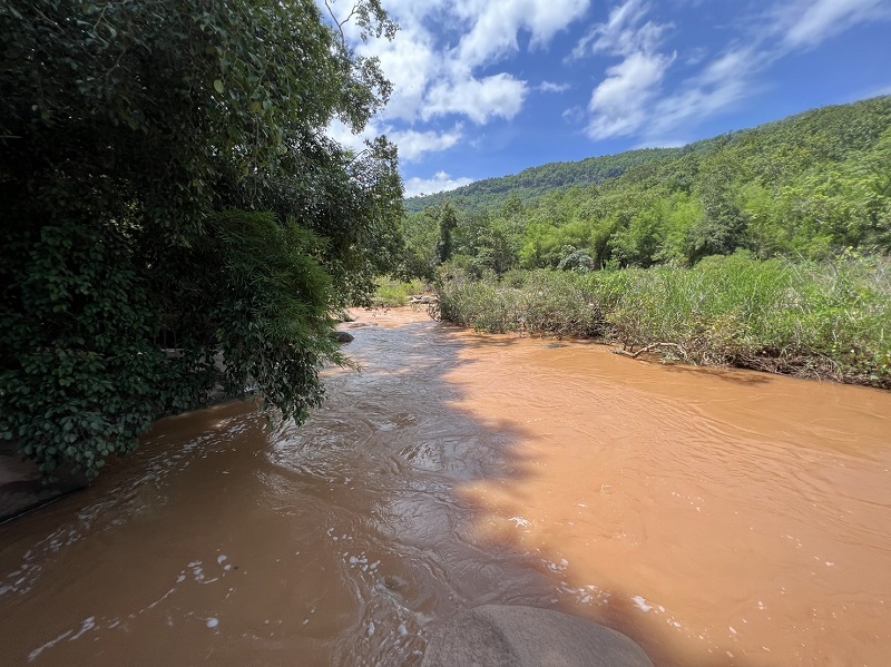 จุดที่ 4 เดินทางไปถึง “น้ำตกตาดใหญ่” ได้เวลาอาหารกลางวันนั่งกินข้าวชิล ๆ แบบชาวท้องถิ่นสัมผัสวิถีชีวิตชุมชนจริง ๆ อาหารใส่ในกระบอกไม้ไผ่ เช่น ผัดไก่ใต้น้ำ ยำส้มโอ เนื้อทอดและข้าวเหนี่ยวห่อใบตอง ถ้ามีโอกาสได้ไปเที่ยวเป็นหมู่คณะก็สั่งอาหารได้ตามเบอร์โทรศัพท์ 062-1179541 เมื่ออิ่มท้องเรียบร้อยก็เดินลงไปชม “น้ำตกตาดใหญ่” เป็นน้ำตกที่ไหลผ่านแผ่นหินทะลุโลกล้านปีมันชั่งน่าทึ่งจริง ๆ ได้เวลาพอสมควรกลับมาขึ้นรถอีแต๊กไปจุดชมวิวทิวทัศน์สวยงามมากจริง ๆ ได้เวลาพอสมควรเข้าที่พัก “บ้านไร่แสนสุขโฮมสเตย์”